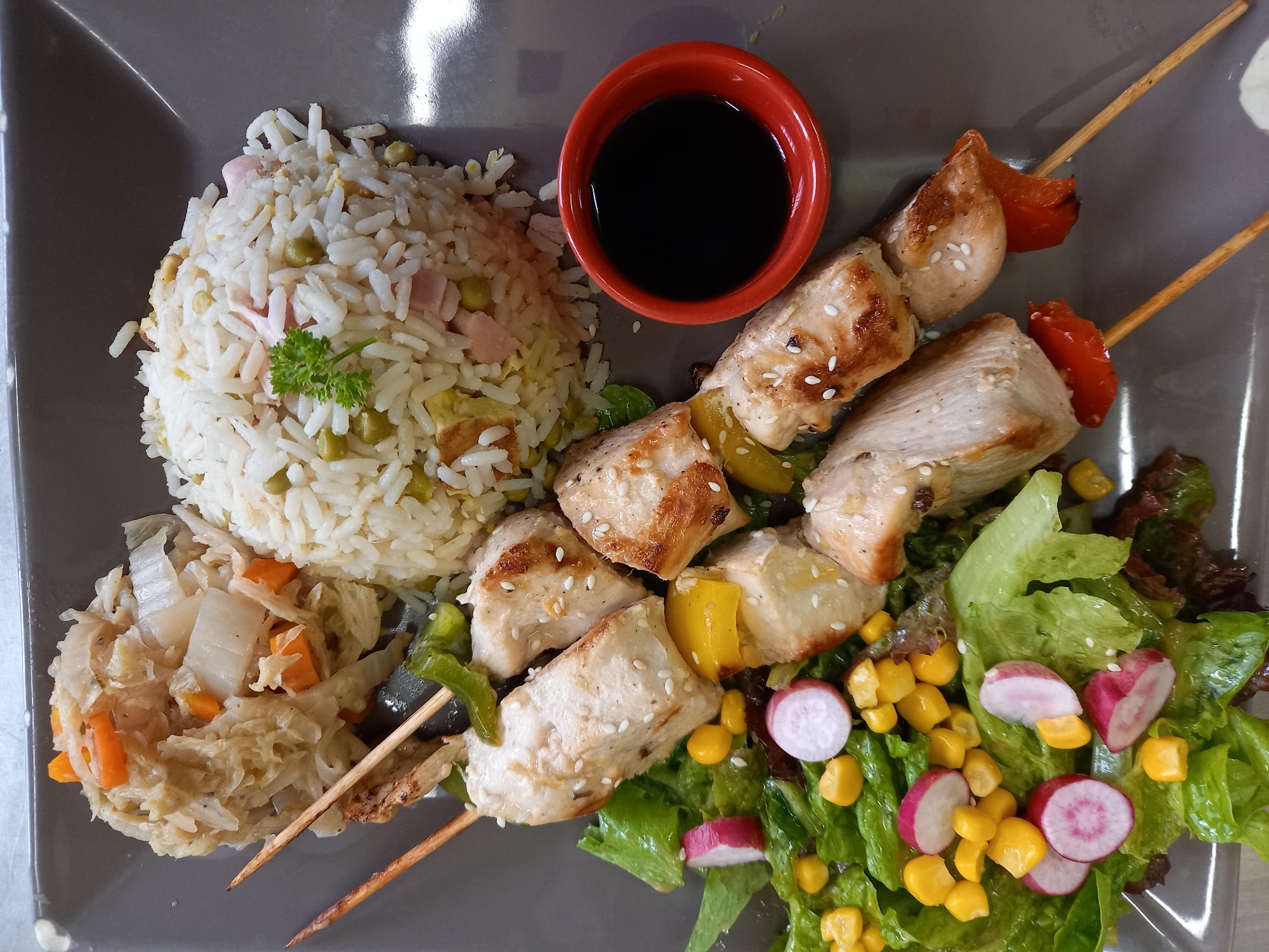 Restaurant avec belle terrasse sous le tilleul à la belle saison. Menu du jour unique "fait maison".
