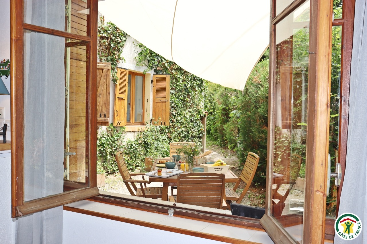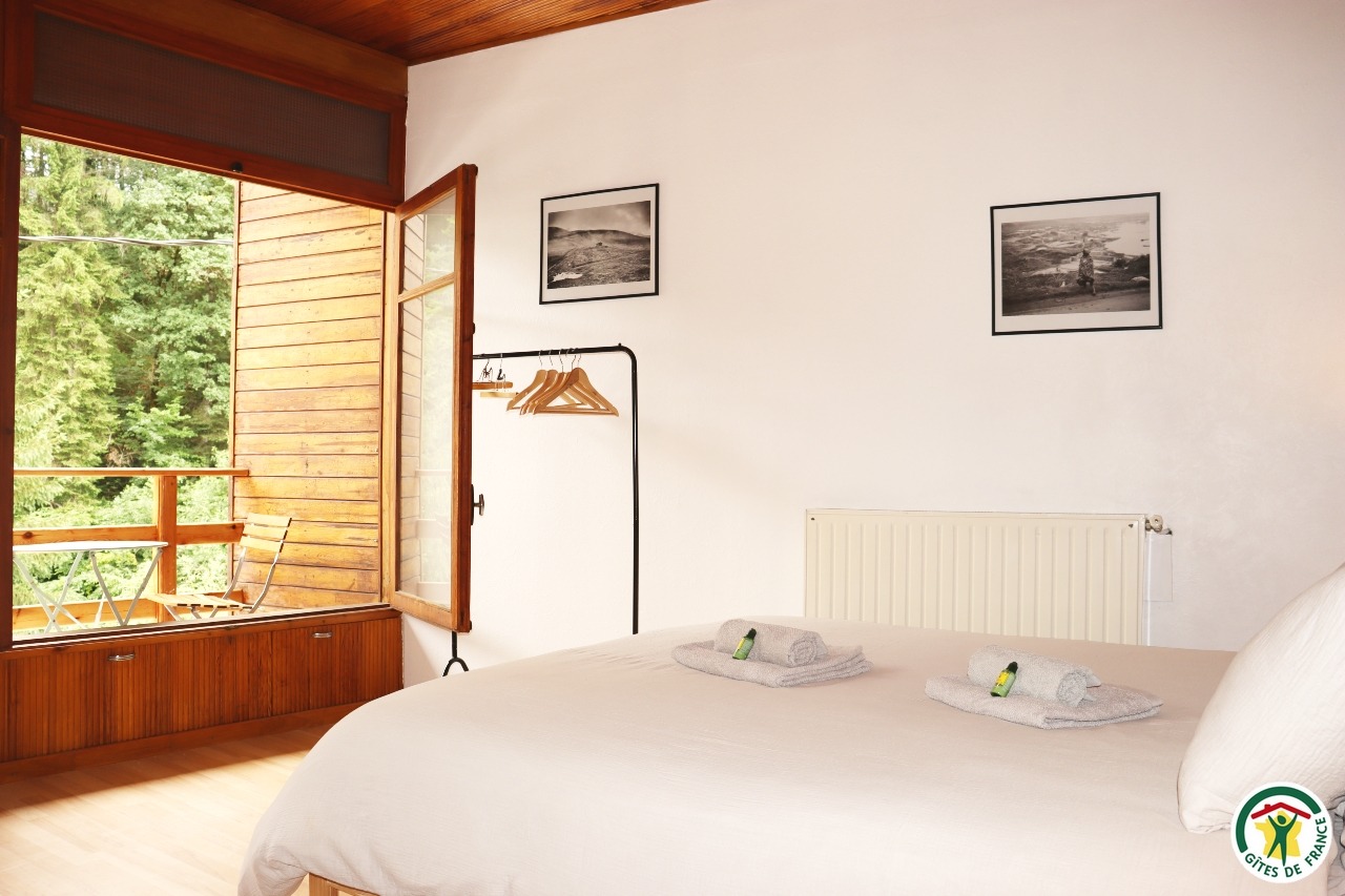 Gîte mitoyen à l'habitation des propriétaires avec entrée indépendante. Rez-de-chaussée : cuisine ouverte sur le séjour, espace repas et coin salon (canapé convertible 1x140), TV, fauteuil, salle d'eau/WC (douche rideau). A l'étage : salle d'eau/WC (douche rideau) et trois chambres. La première chambre dispose de deux lits simples ou d'un lit double (2x80 ou 1x160), la deuxième chambre d'un lit double (1x160) et accès à un balcon, la troisième chambre, plus petite, dispose de deux lits simples dont un lit superposé (2x90). Depuis la pièce à vivre du rez-de-chaussée, accès à la terrasse avec salon de jardin, barbecue charbon de bois, l'espace est clos avec deux portillons. En traversant la route (peu passante), terrain en herbe à partager avec les propriétaires : table de pique-nique, bains de soleil et accès rivière pour la baignade. 2 à 3 places de stationnement sur la propriété. A proximité de la D103.