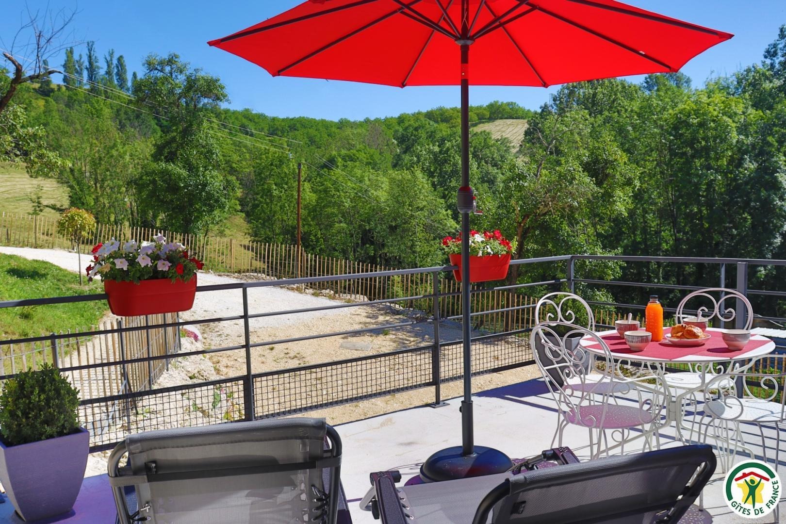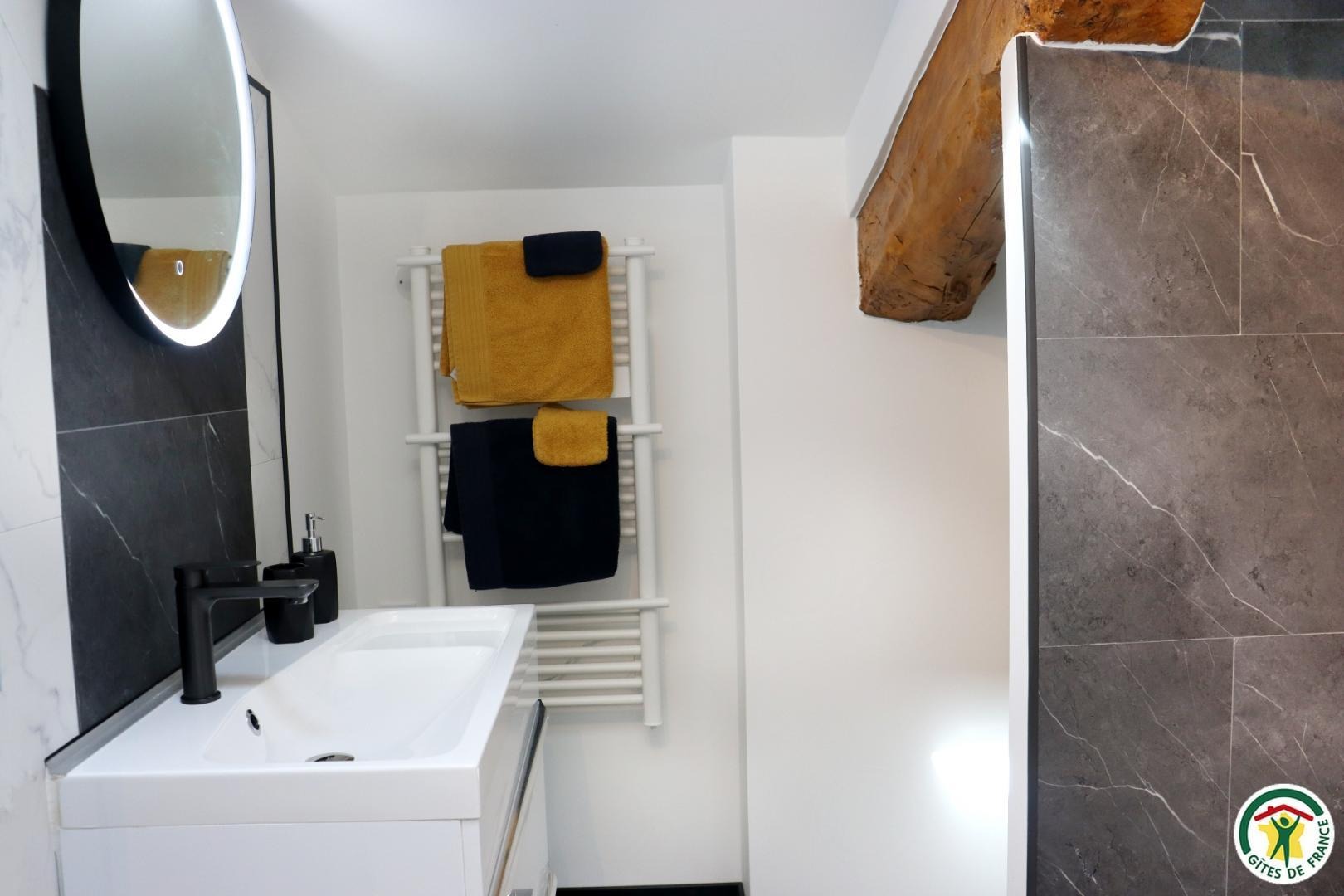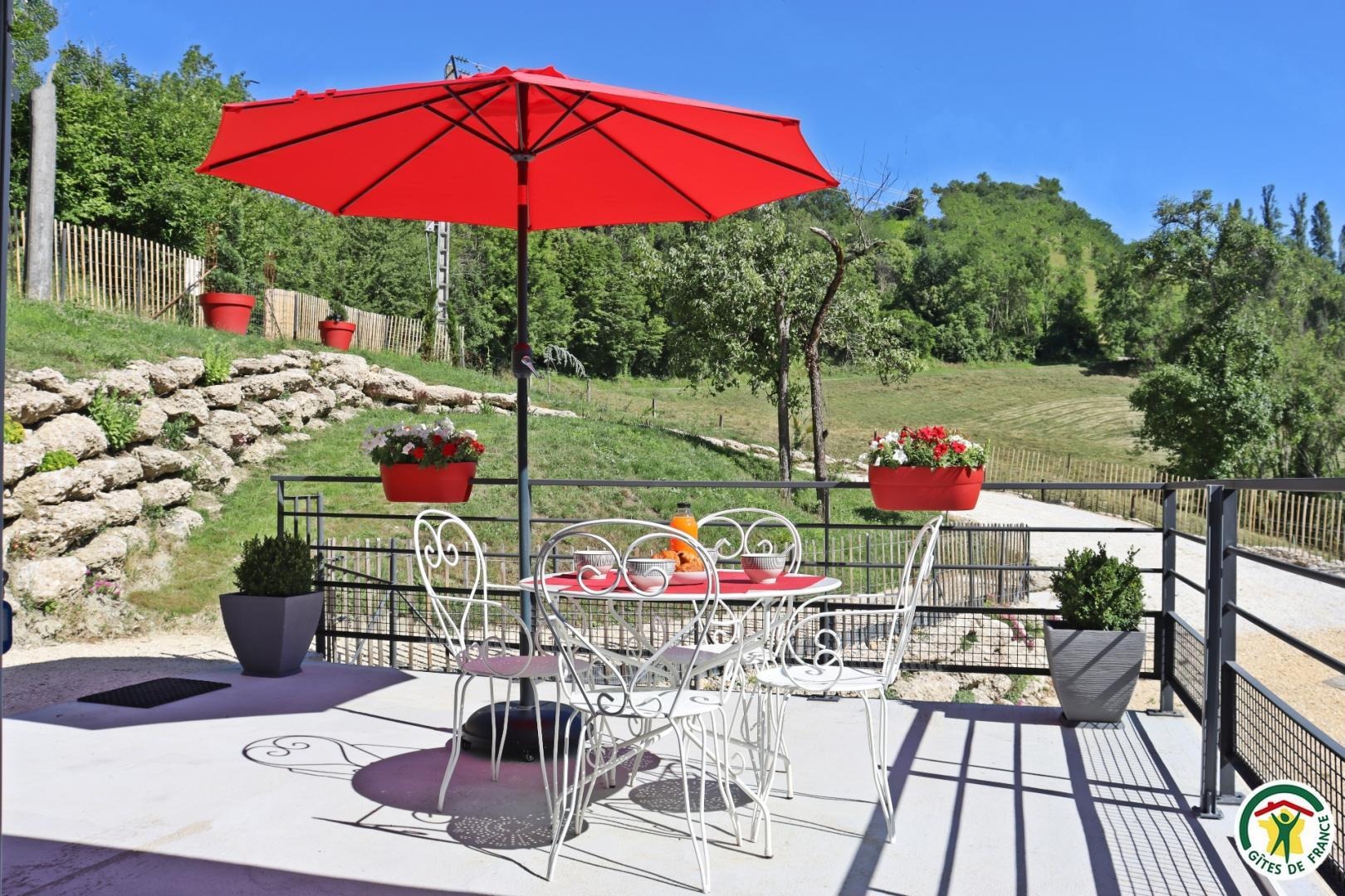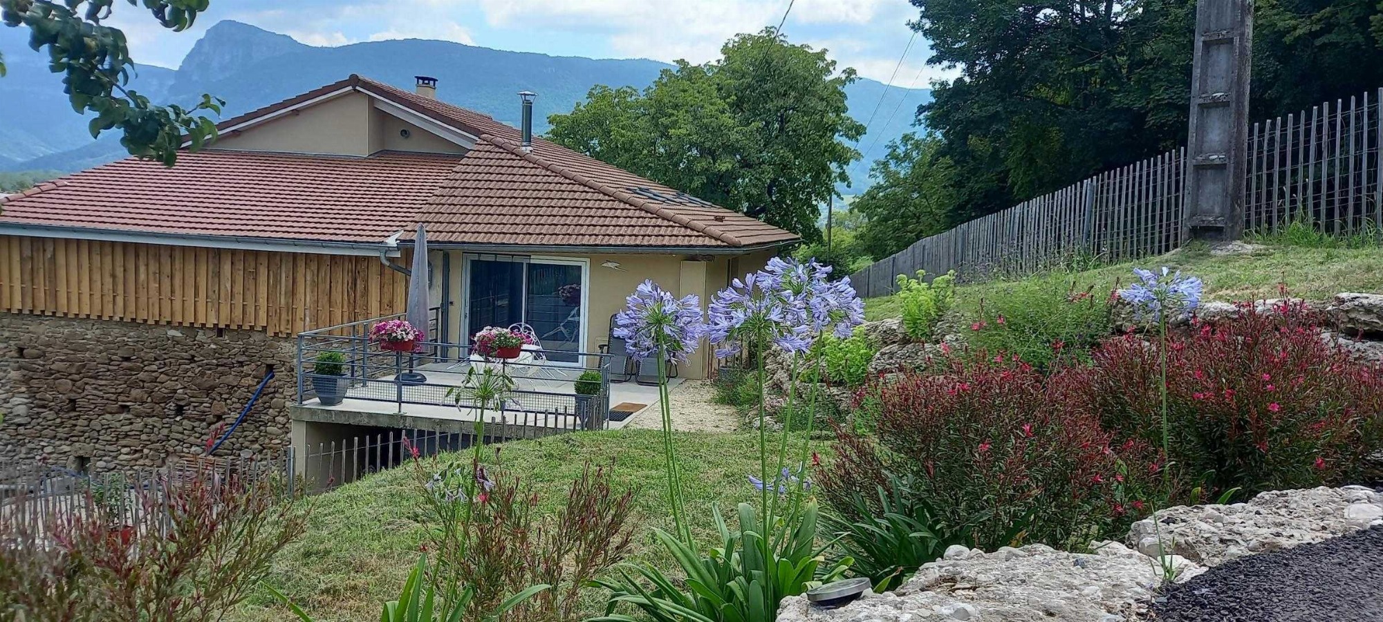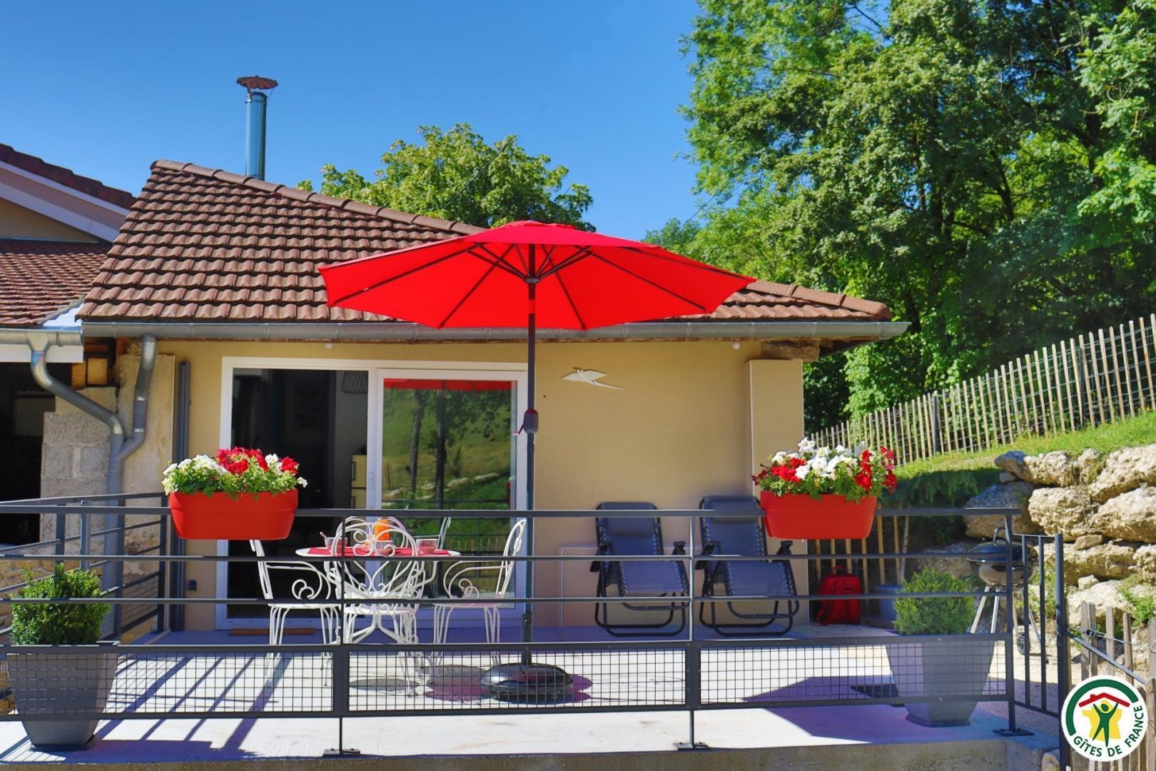 Appartement mitoyen par le côté à un futur gîte (travaux en cours), les propriétaires résident sur place. Entrée indépendante, stationnement sur place et terrain clos. Accès à l'hébergement par 3 marches et par un petit chemin jusqu'à la terrasse privative (salon de jardin, parasol, barbecue charbon). Entrée par la pièce à vivre dotée d'une cuisine équipée, d'un espace repas et d'un coin salon avec canapé, TV, poêle à bois. Une chambre avec un lit double (1x160) et une seconde chambre avec deux lits simples (2x90). Toutes deux disposent d'un velux et d'un rangement. Salle d'eau (douche italienne avec rideau, lavabo, sèche-serviette) et wc indépendant (sanibroyeur). La façade du gîte n'a pas encore été refaite, elle le sera en même temps que la façade du second gîte, en cours d'aménagement.
