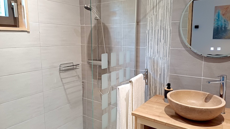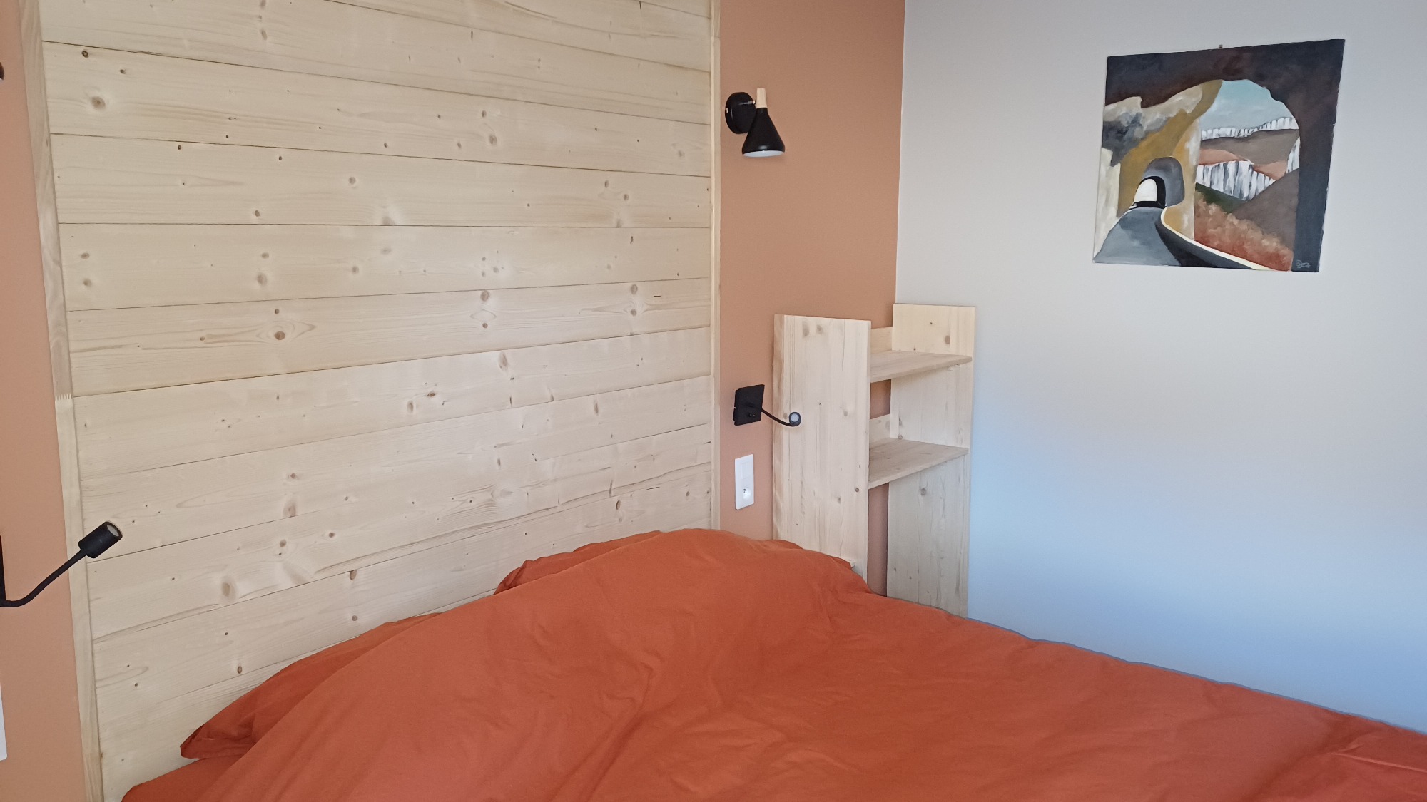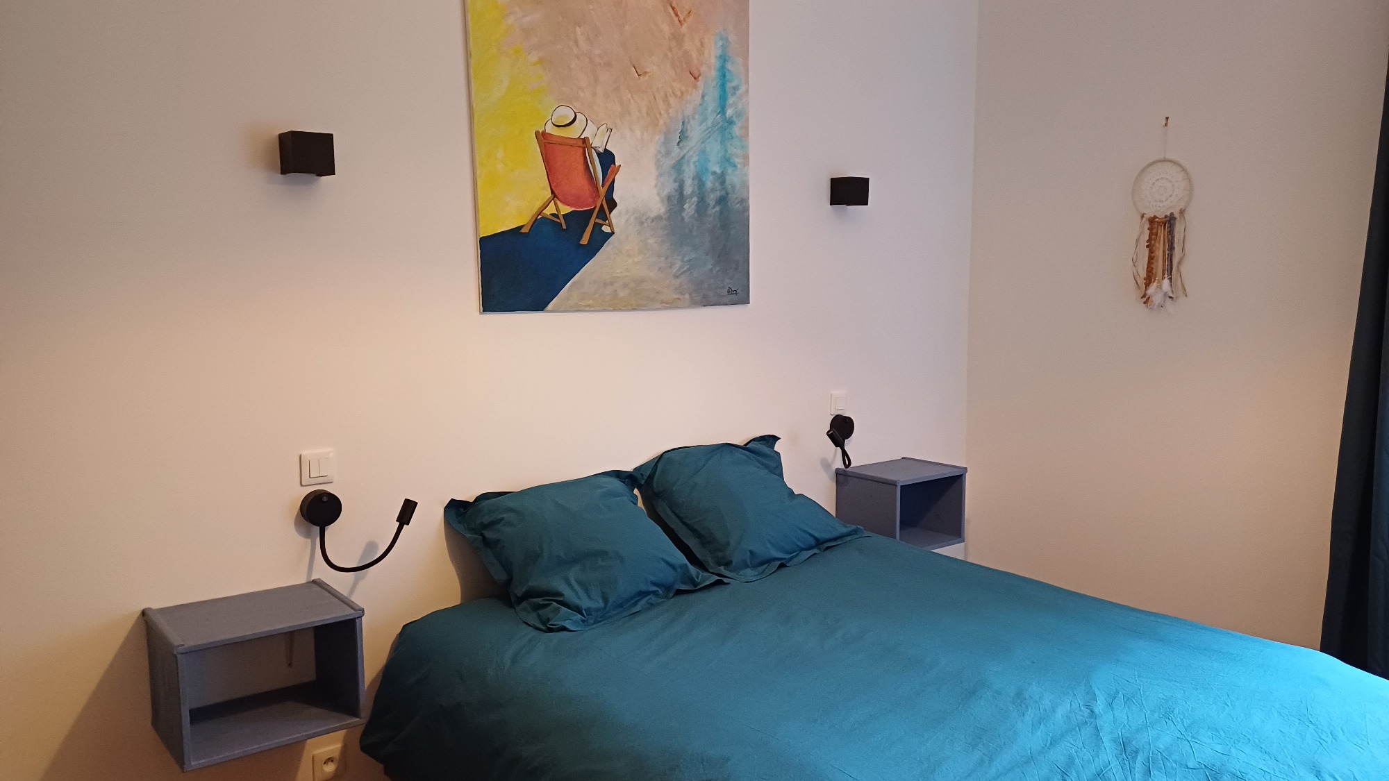 Une des chambres est accessible au PMR, en rez de chaussée avec accès privatif pour le véhicule. 1 lit double de 160 cm. Porte coulissante pour l'accès à la salle de bain avec douche à l'italienne.