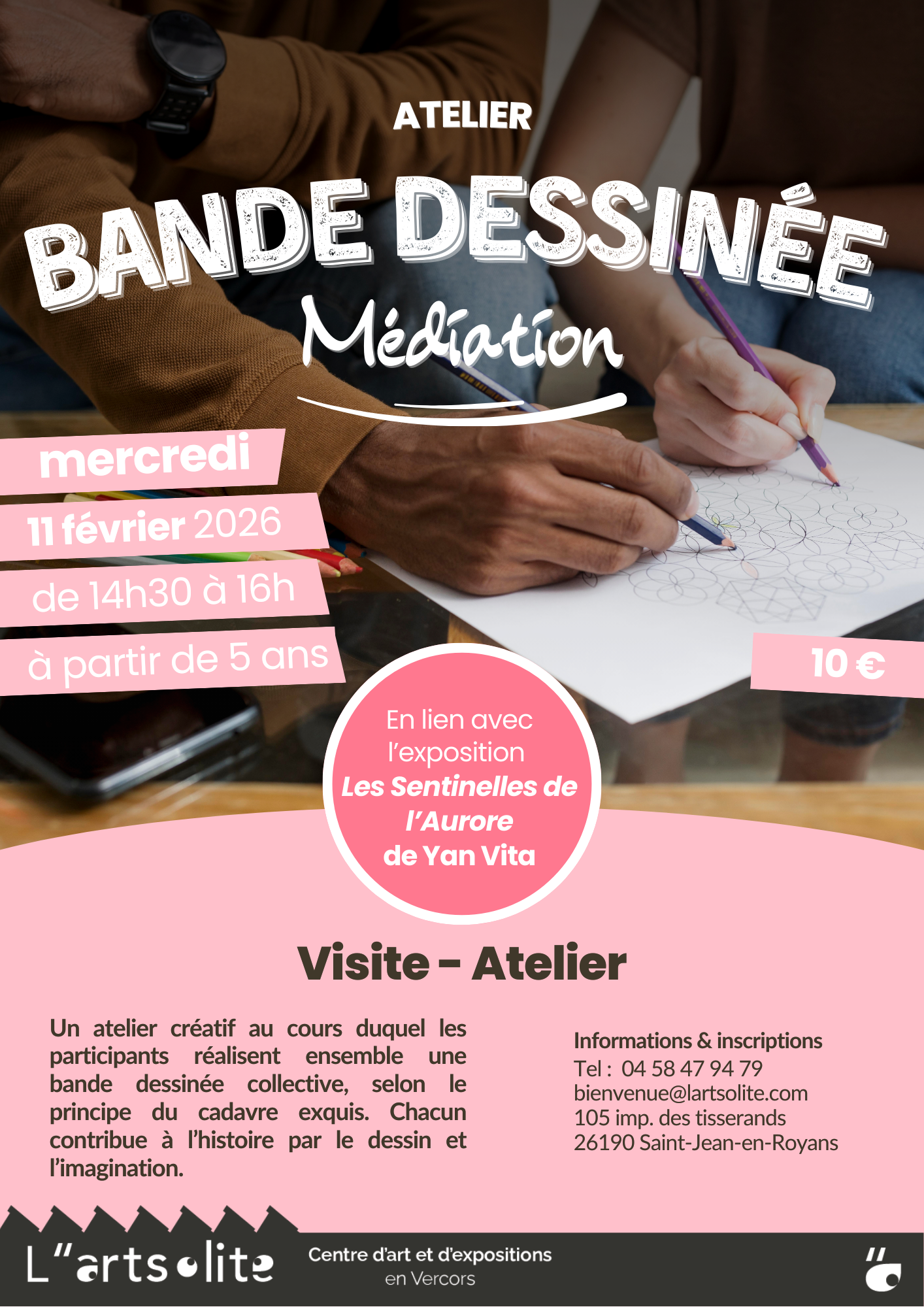 Un atelier créatif au cours duquel les participants réalisent ensemble une bande dessinée collective, selon le principe du cadavre exquis. Chacun contribue à l’histoire par le dessin et l’imagination.