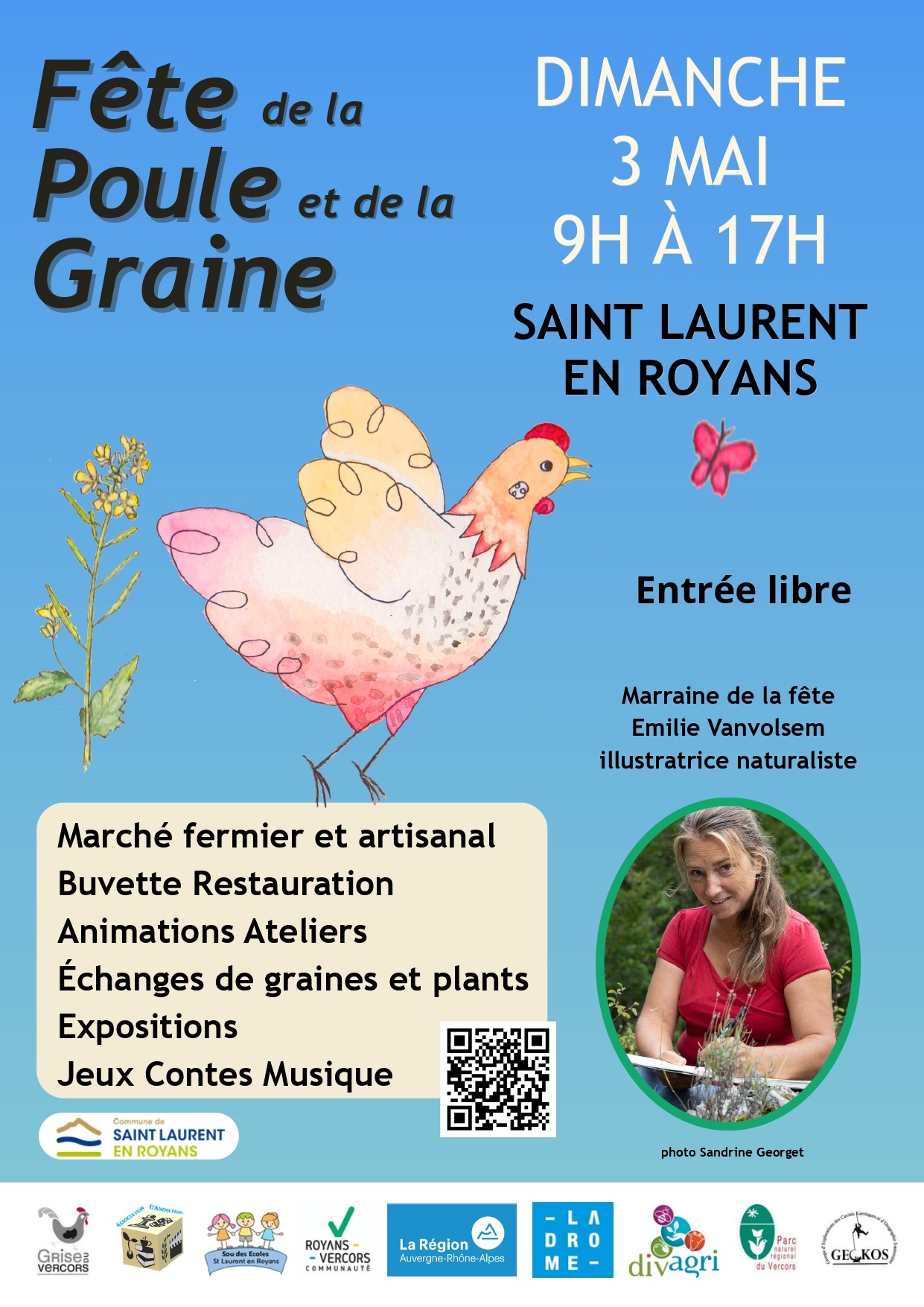 De nombreuses animations vous attendent également à la bibliothèque-ludothèque, le dimanche 3 mai de 9h à 17h à l'occasion de la Fête de la Poule et de la Graine (grands jeux en bois, marché de la grainothèque, braderie, lectures d'histoires, atelier dessin naturaliste avec Emilie Vanvolsen et dédicaces, tournois et jeux...).