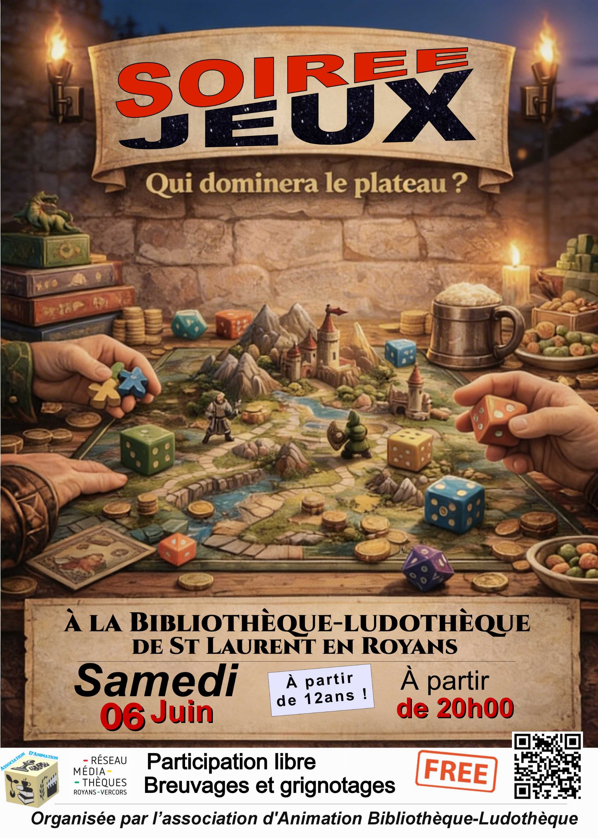 Soirée jeux proposée par l'association d'animation de la bibliothèque-ludothèque de Saint-Laurent-en-Royans.