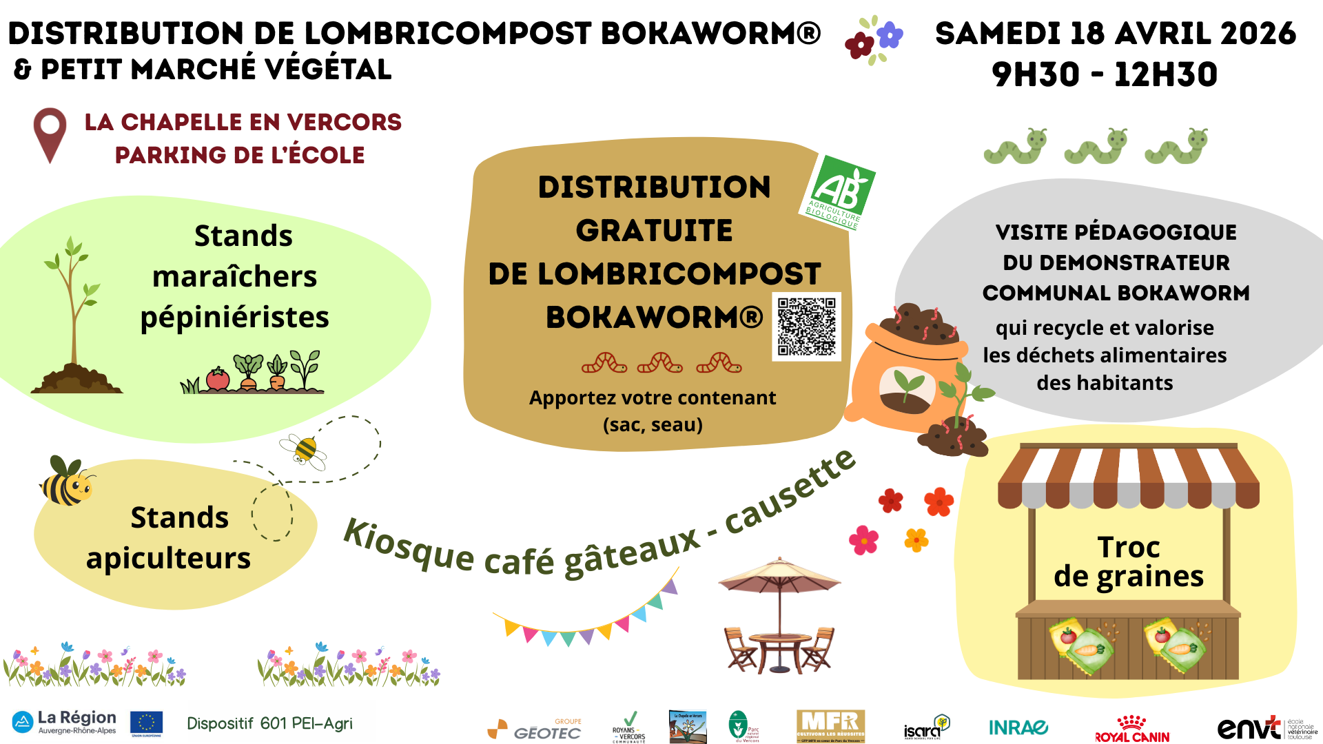 Nous vous donnons rendez-vous samedi 18 avril à La Chapelle-en-Vercors pour une matinée conviviale autour du végétal, du jardin et du lombricompost Bokaworm®