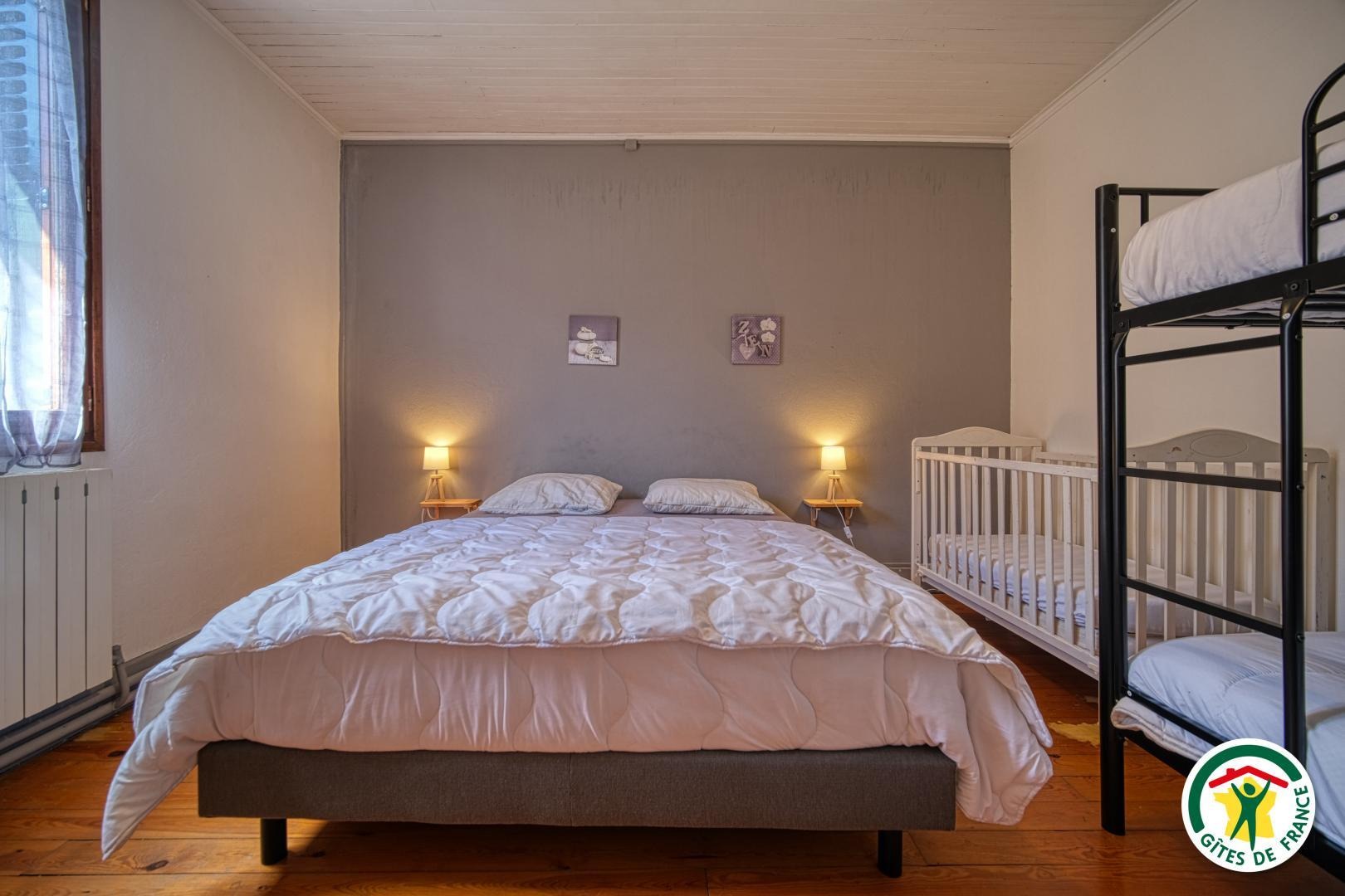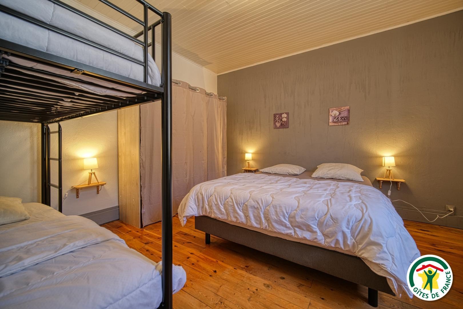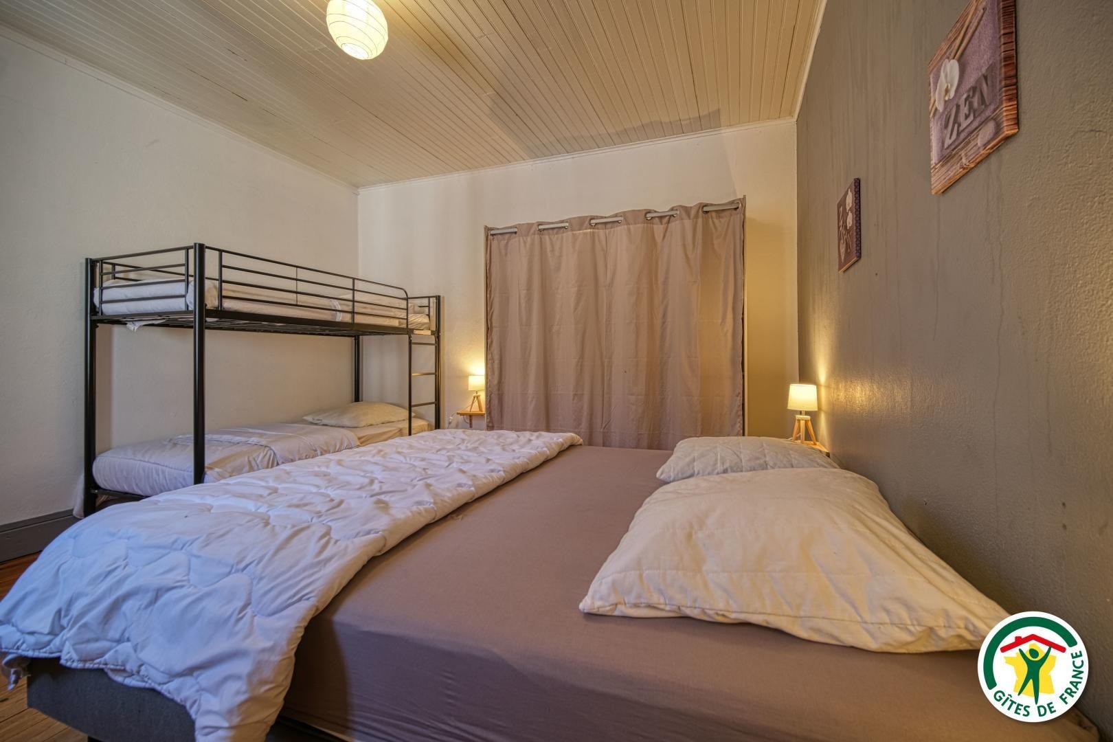 4 chambres équipées chacune de lits double 160/190, 2 lits simple 90/200, 2 lits superposé