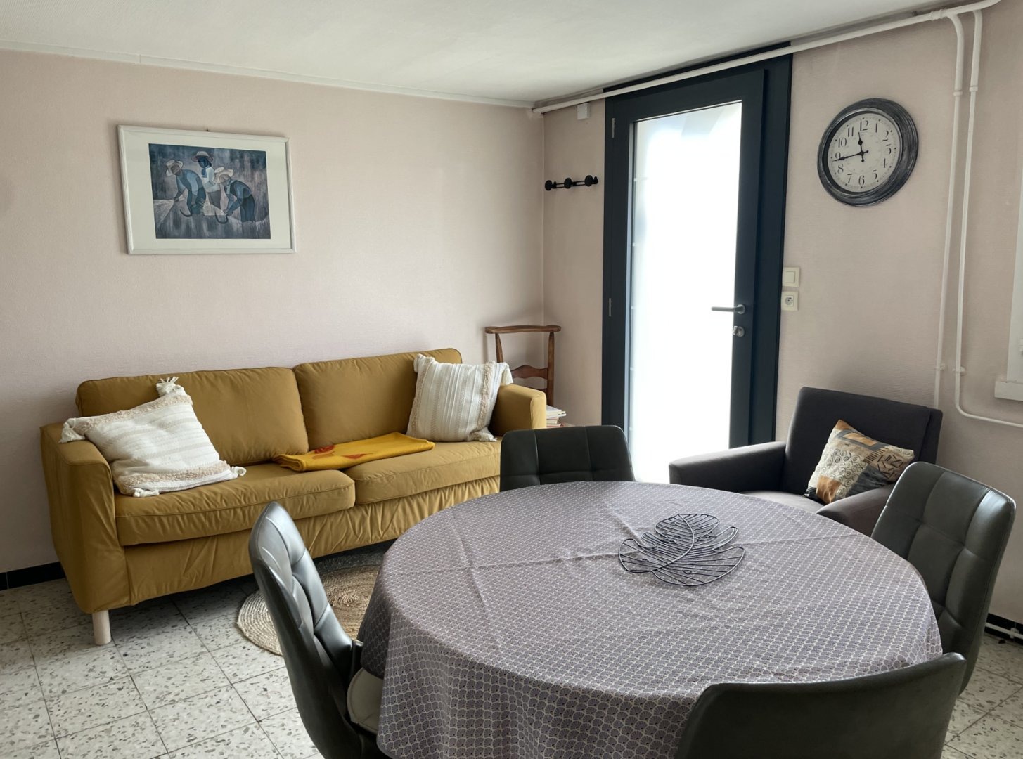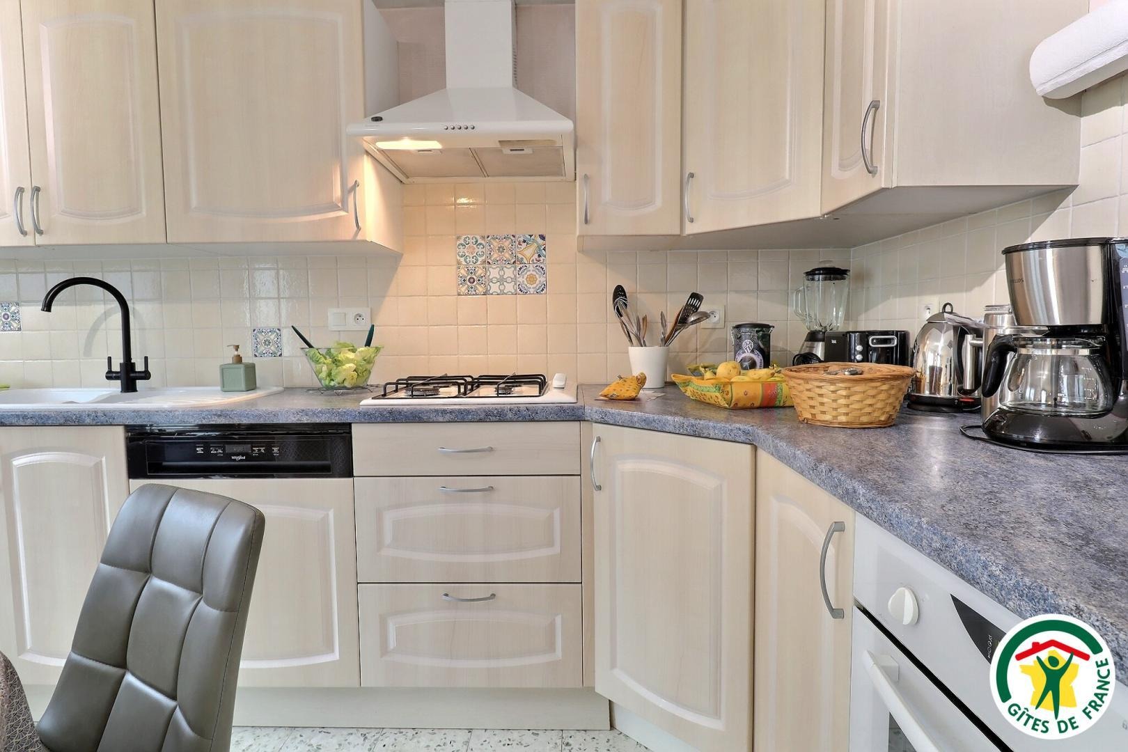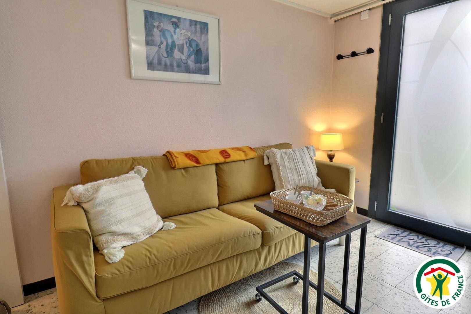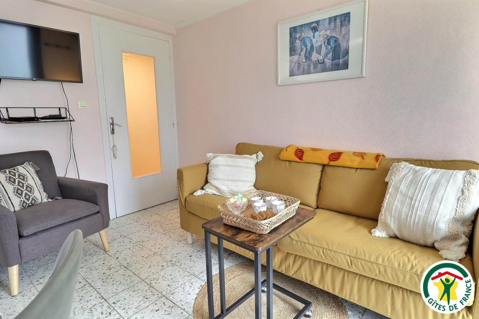 La pièce de vie comprend une cuisine équipée et fonctionnelle, un coin salon avec TV, Wi-Fi, Netflix et box.