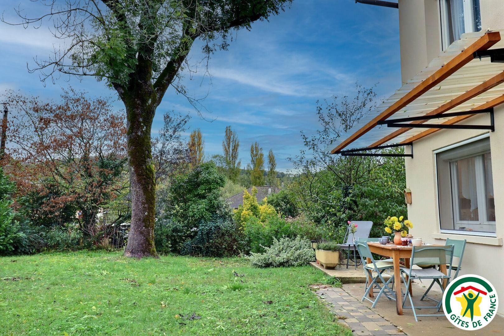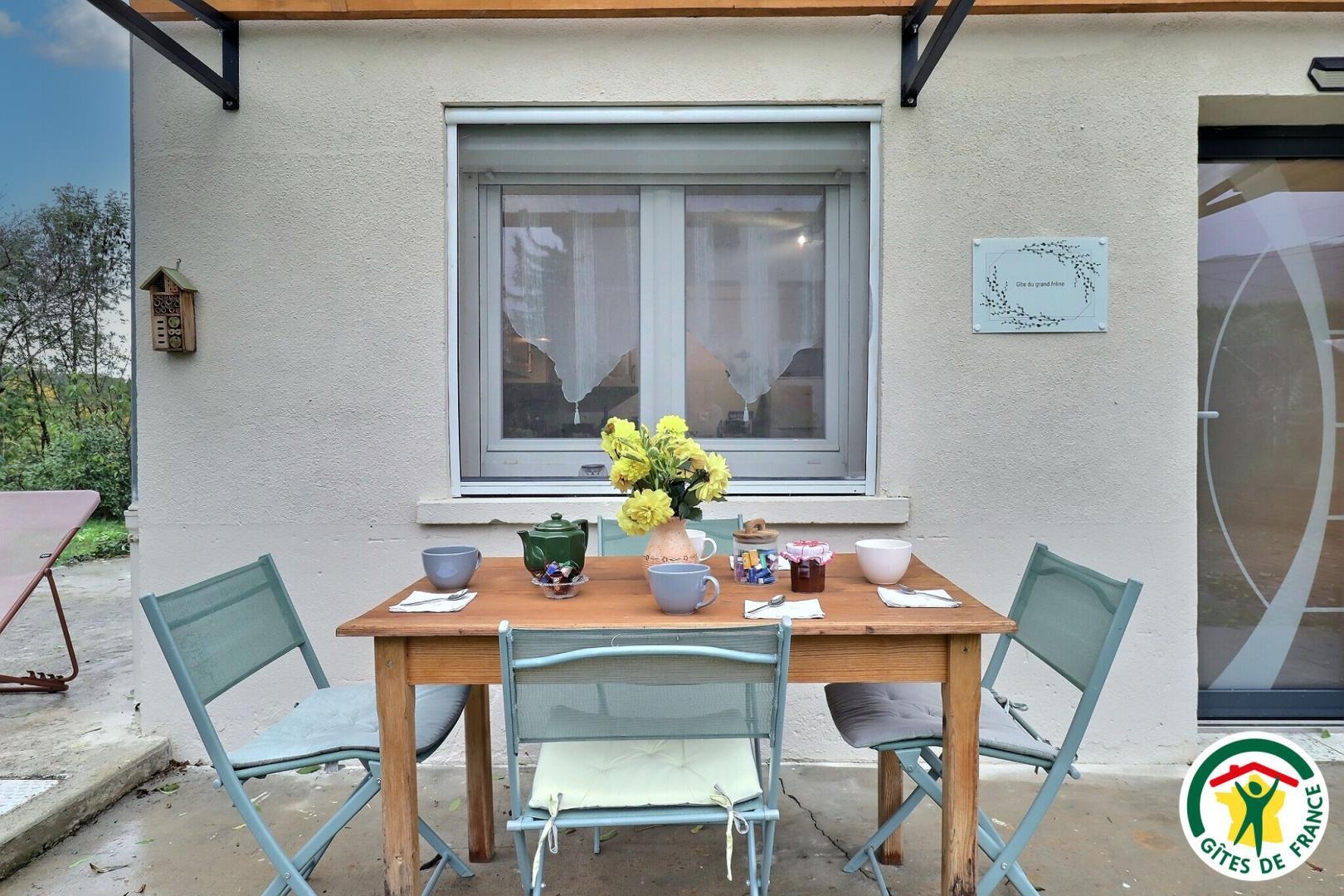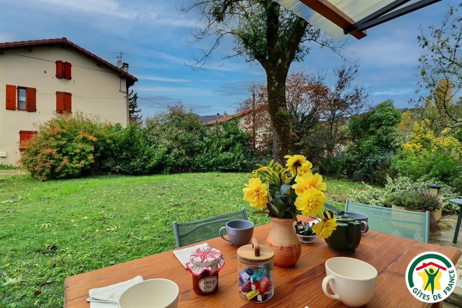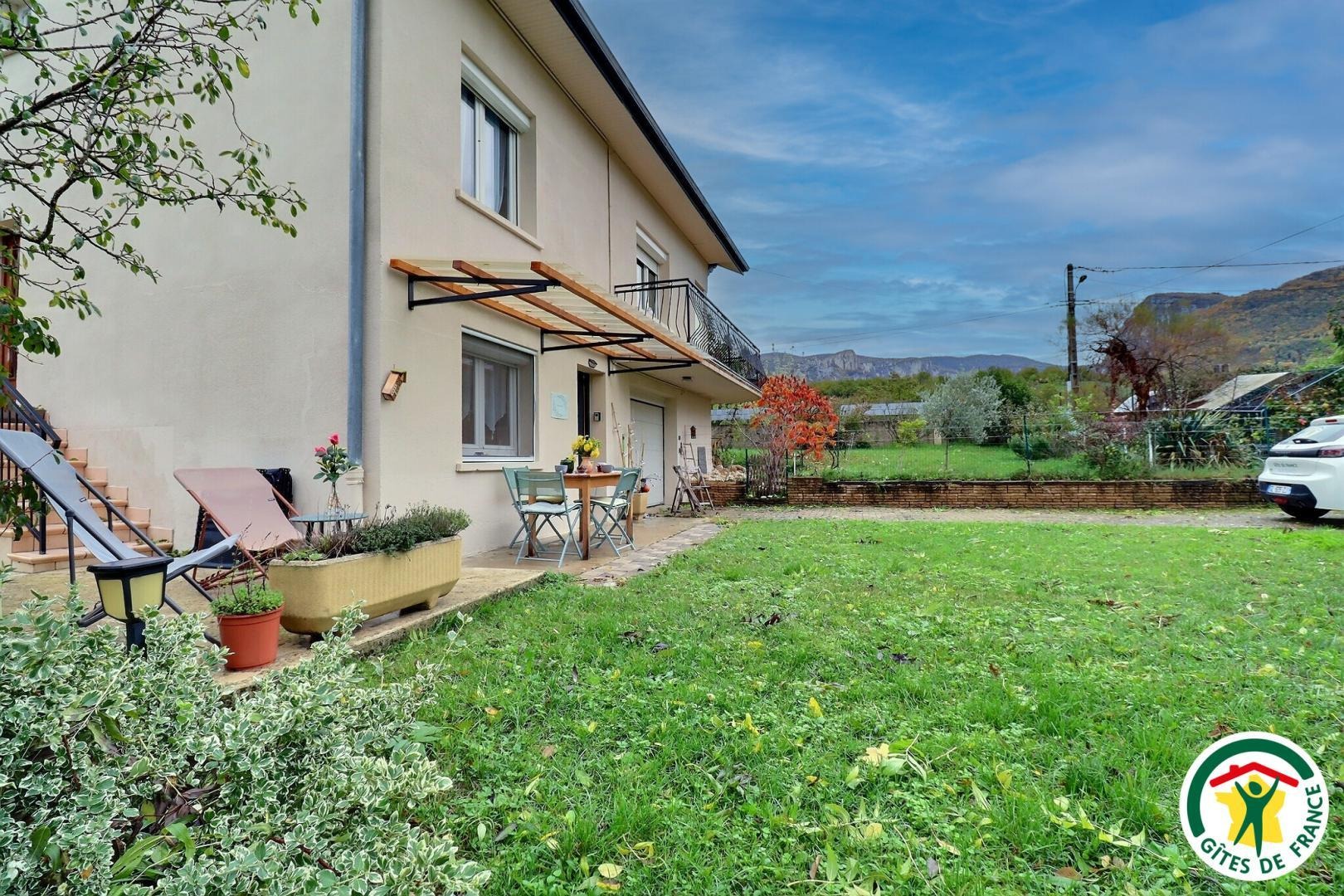À l’extérieur, profitez d’un espace arboré sous un frêne, avec terrasse pour les repas, barbecue, chaises longues et vue sur la montagne.
