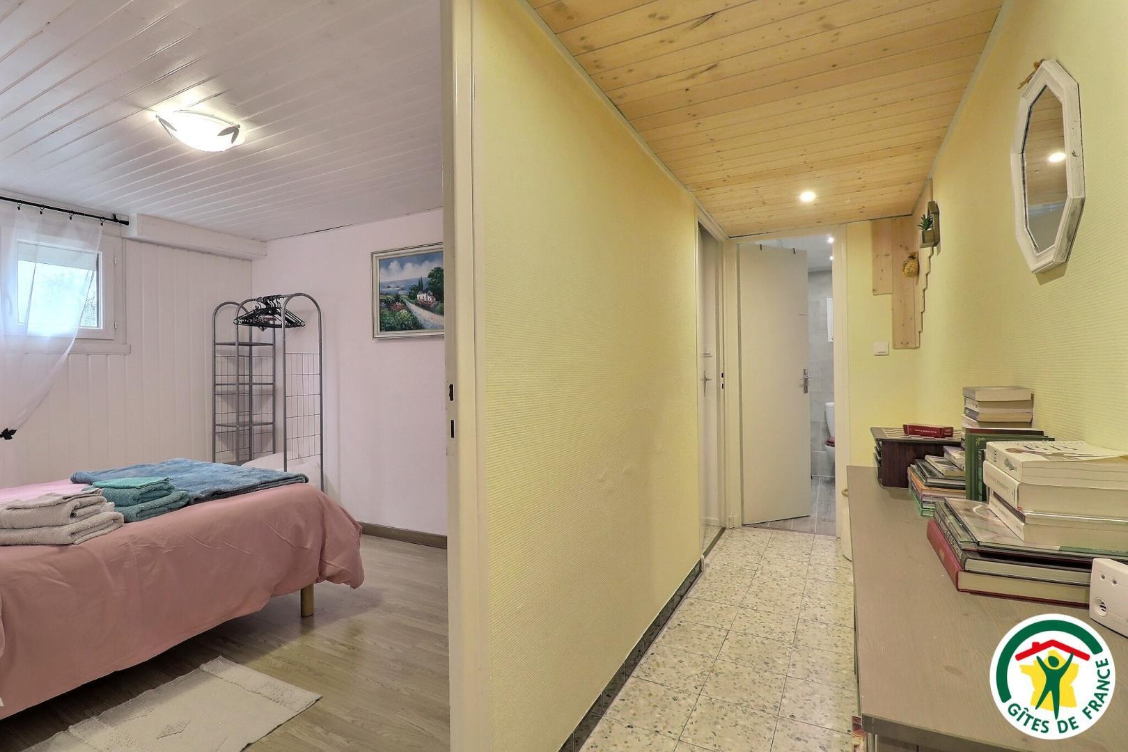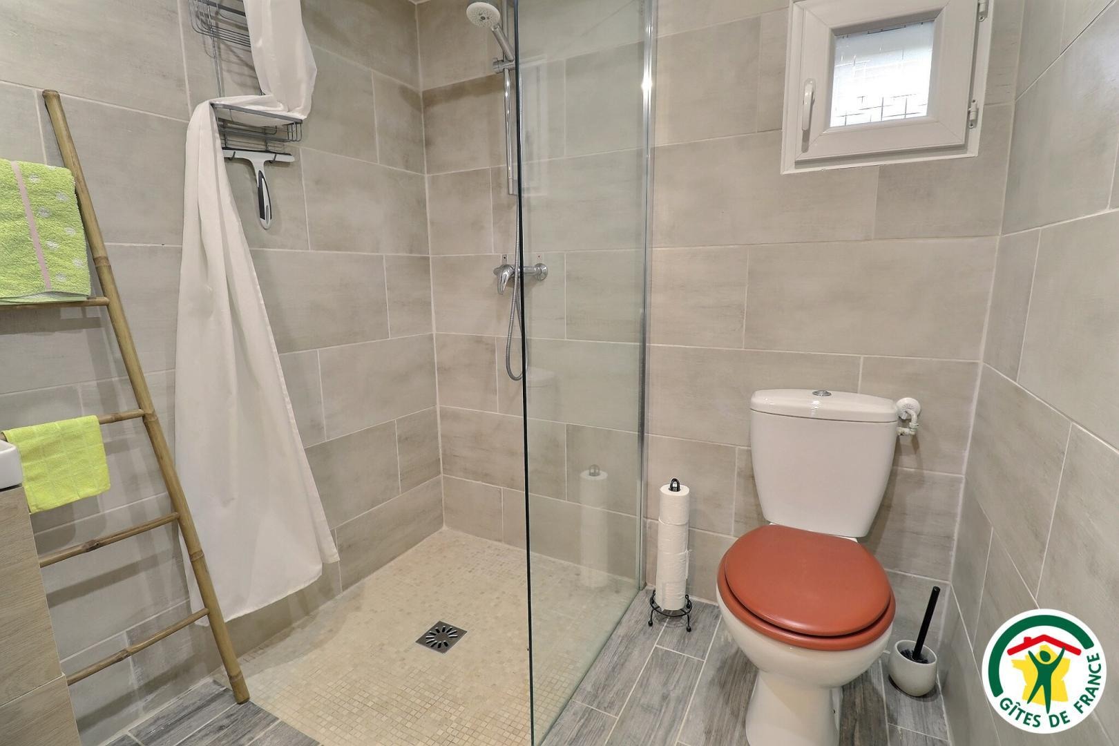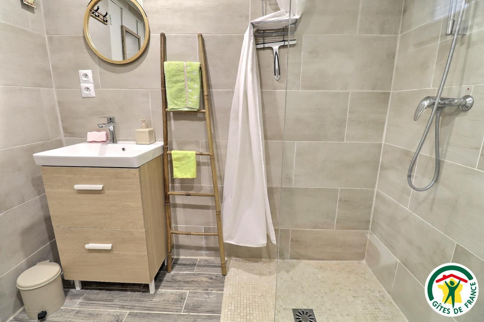 Gîte de plain-pied, accessible depuis le parking privé jusqu'à la douche à l’italienne.