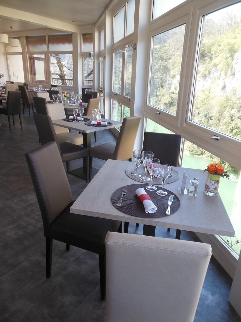 Cuisine traditionnelle et spécialités régionales. Terrasse au bord de l'eau. Salle de séminaire.