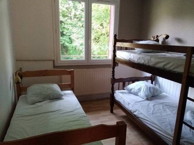 1 chambre avec 3 lits simples dont 1 superposé, équipée d’oreillers, couettes et protège-matelas