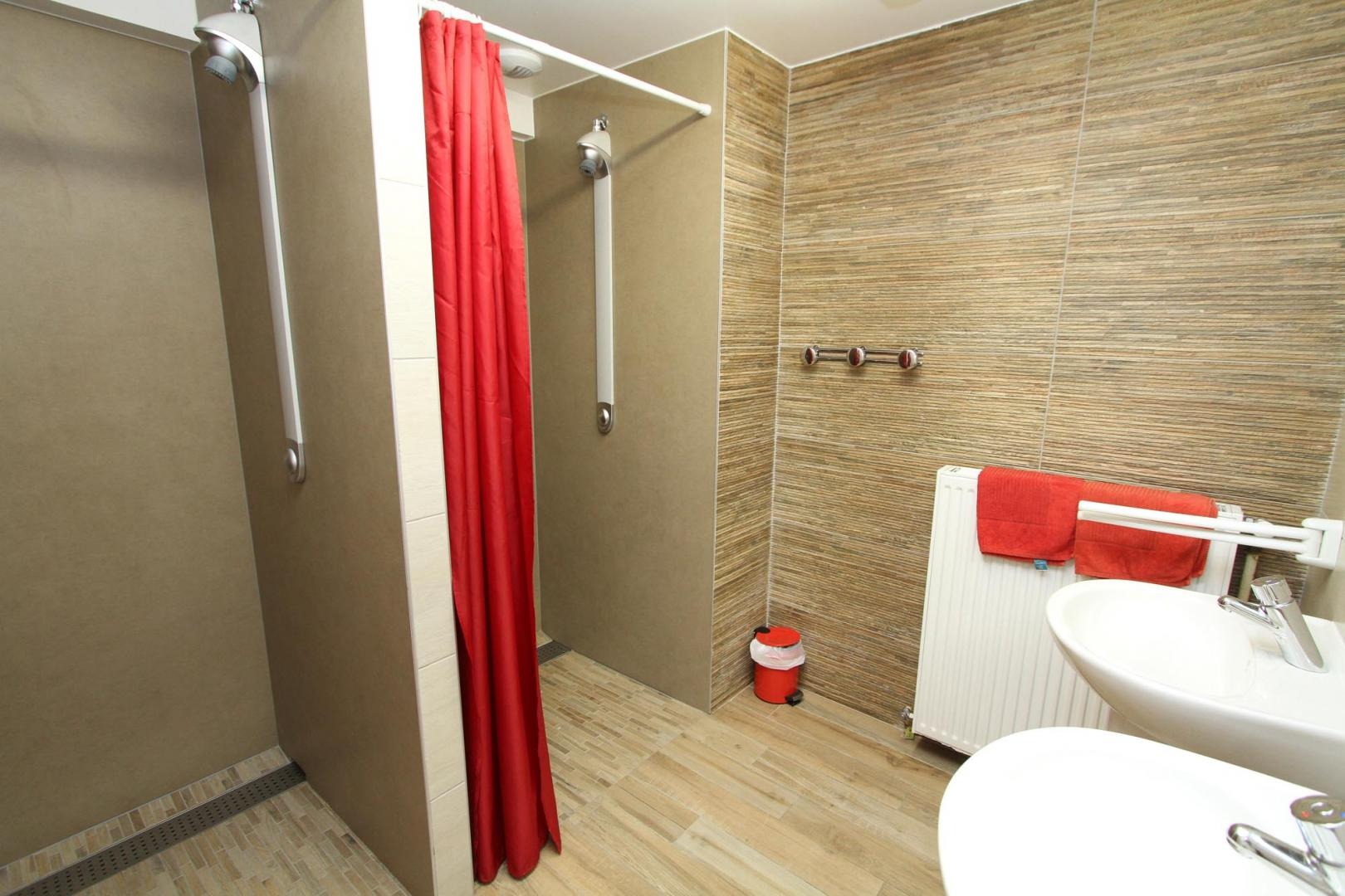 8 douches, 5 wc.