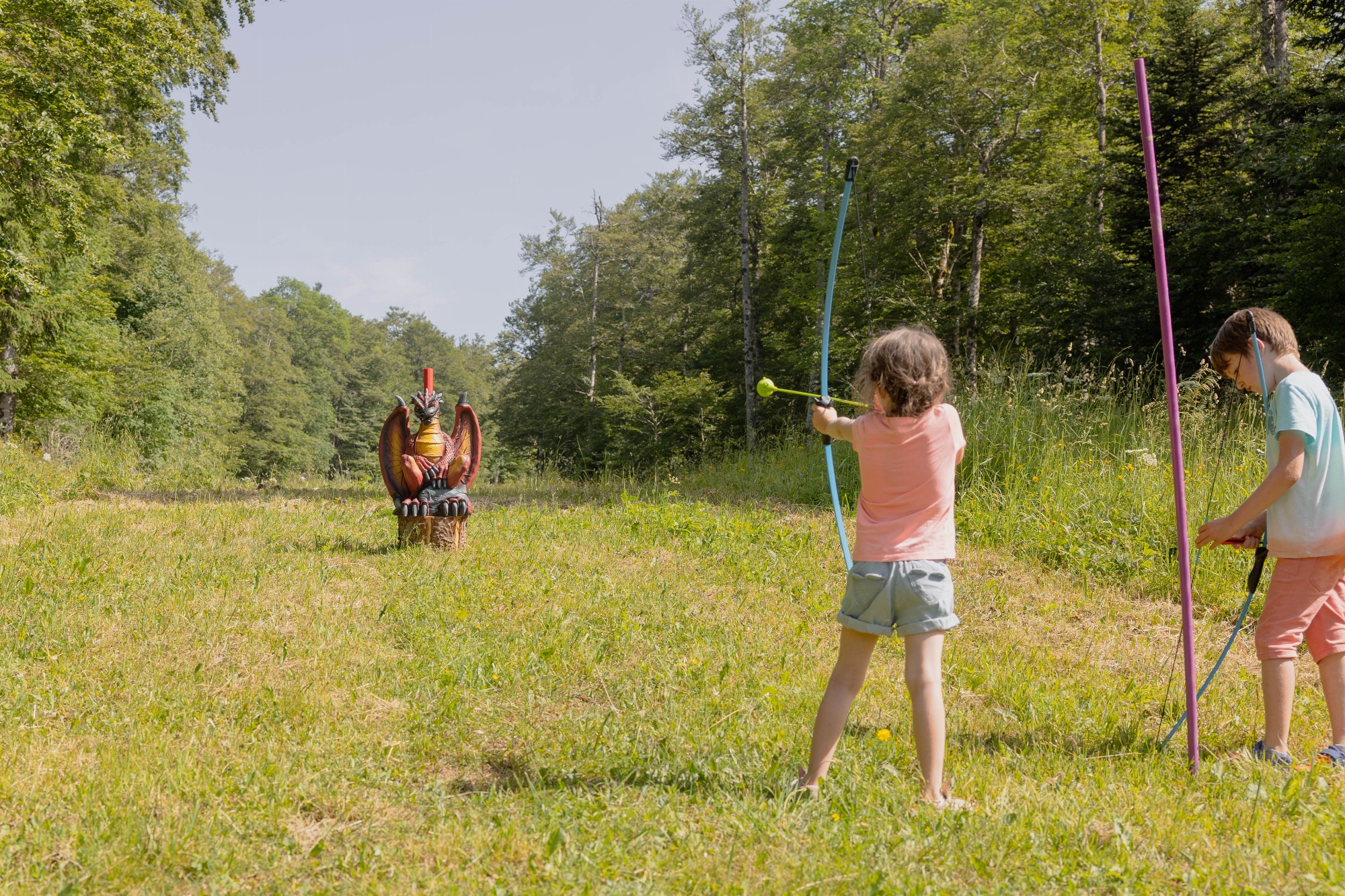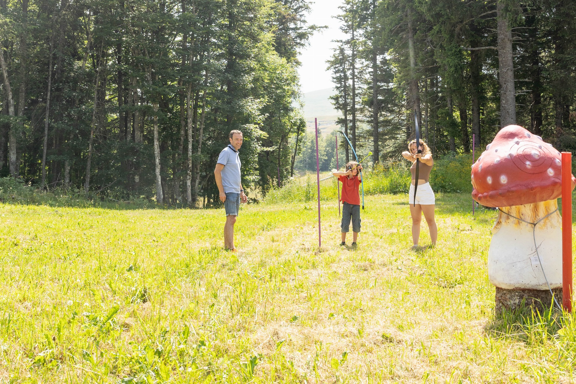 Parcours de tir à l'arc familial avec du matériel adapté (arc et flèches) et avec des cibles originales. Une histoire est proposé avec des monstres qui envahissent la station ! Les enfants deviennent des super héros grâce à leur arc !