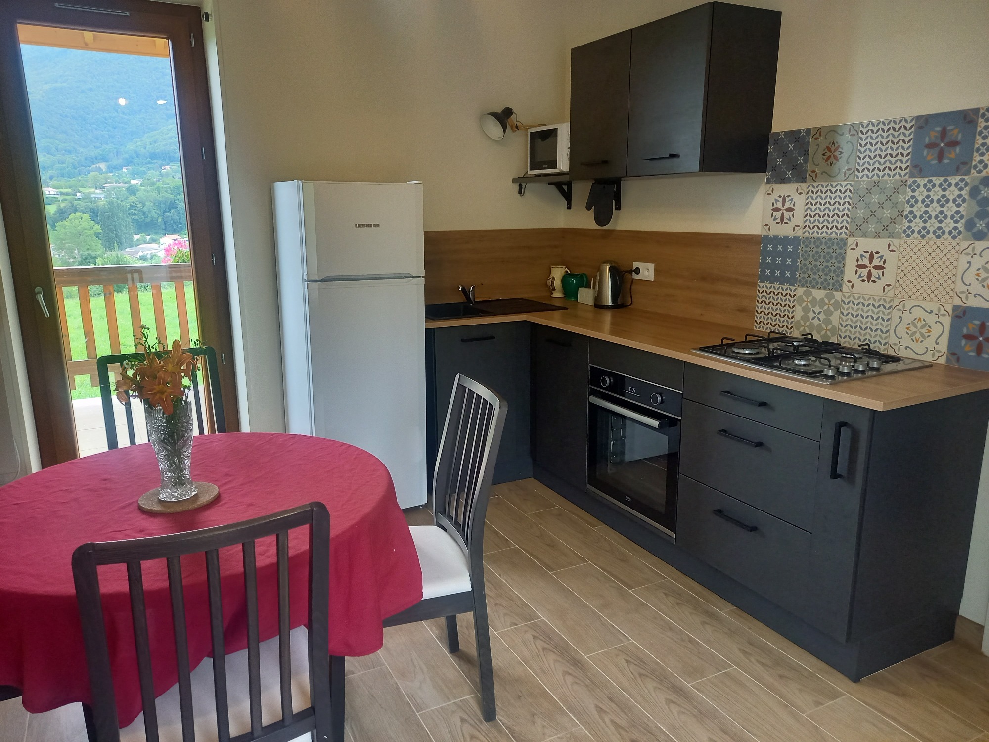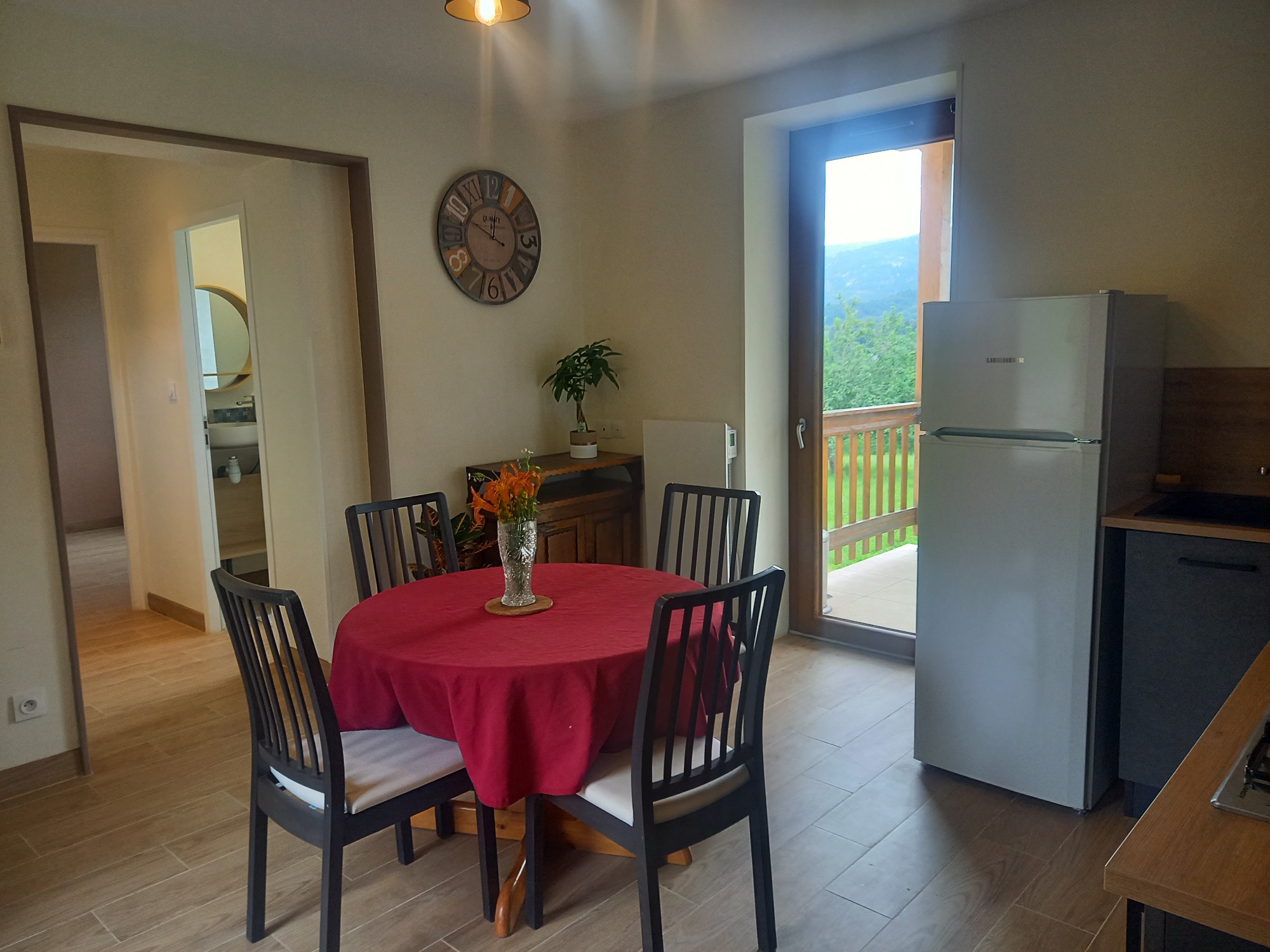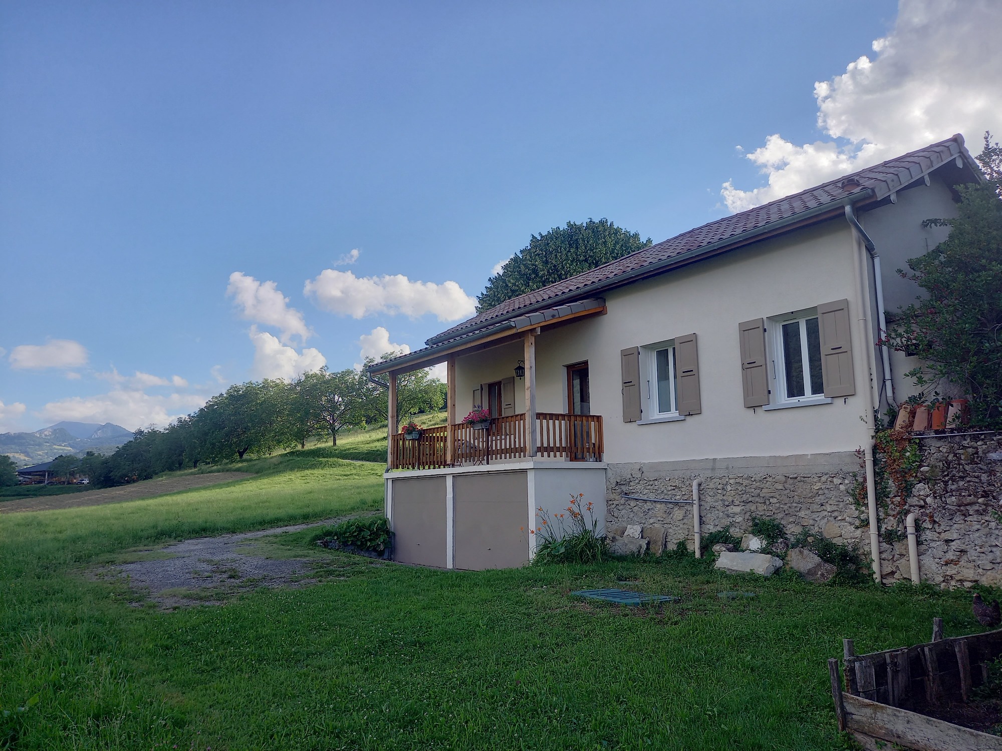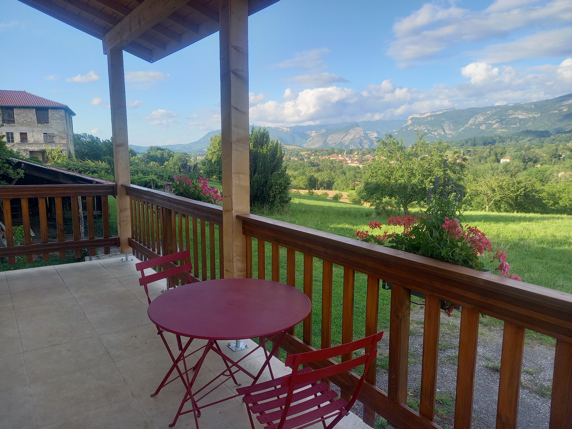 Le gîte est une maisonnette indépendante, entièrement rénovée à l'entrée de notre ferme. Entouré de verdure, au calme et au milieu de la nature, il possède une terrasse extérieure couverte avec vue magnifique sur les falaises du Vercors.