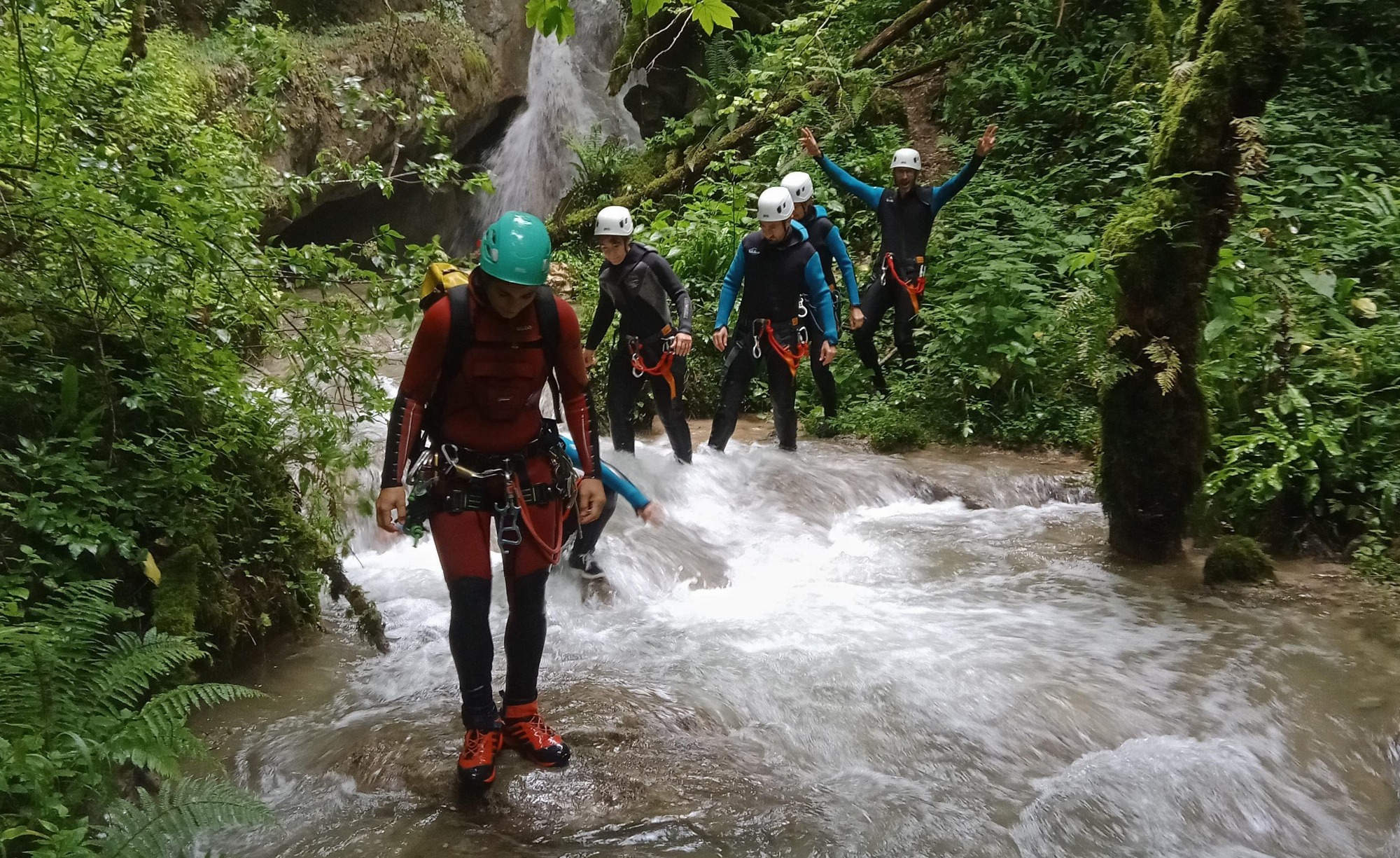 Description du parcours : Nous remonterons la rivière pendant 30 à 40 minutes, puis descendrons par la rivière, à la rencontre des différents obstacles et ateliers nature. Le parcours, aux formes géologiques étonnantes est entouré d’une magnifique et luxuriante végétation.