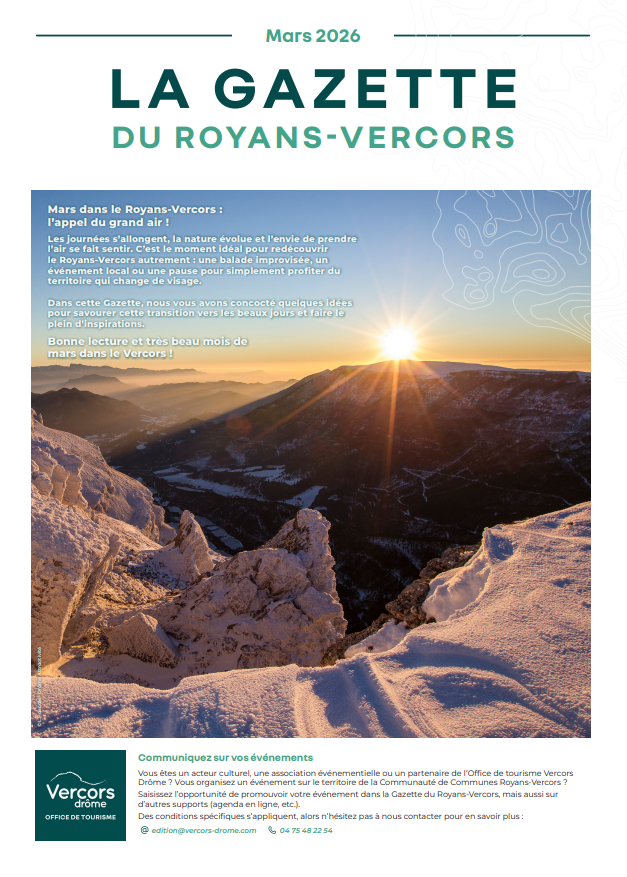 Retrouvez la Gazette du Royans-Vercors dans les offices de tourisme ainsi que dans de nombreux commerces et sites touristiques.