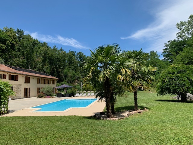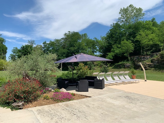 Belle demeure au cœur d'un vaste parc arboré, au calme, avec piscine chauffée, terrasses, terrain de boules, hamacs, climatisation, à 2 km d’un village avec lac et aqueduc. Confort et nature sur 4000 m², à partager avec des hôtes discrets.