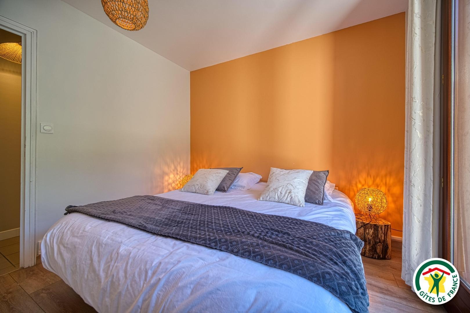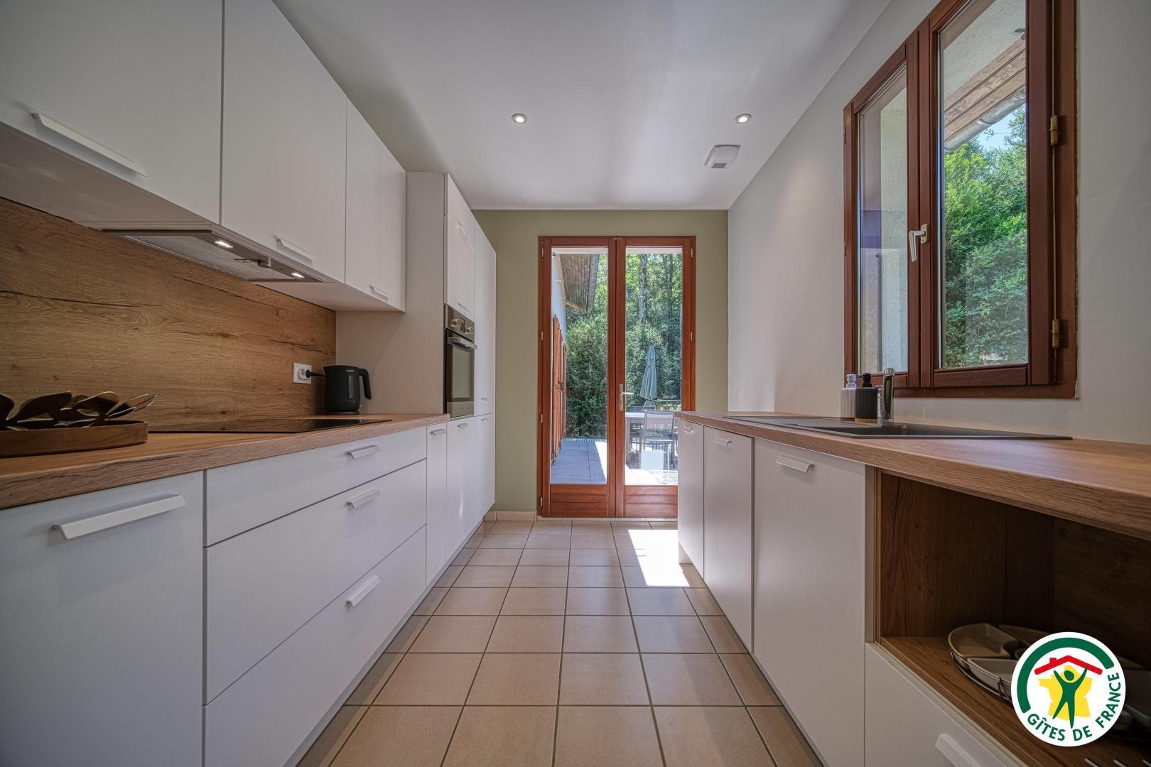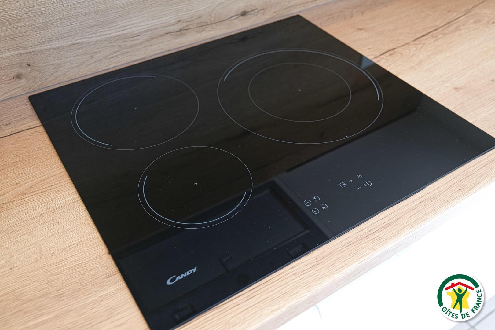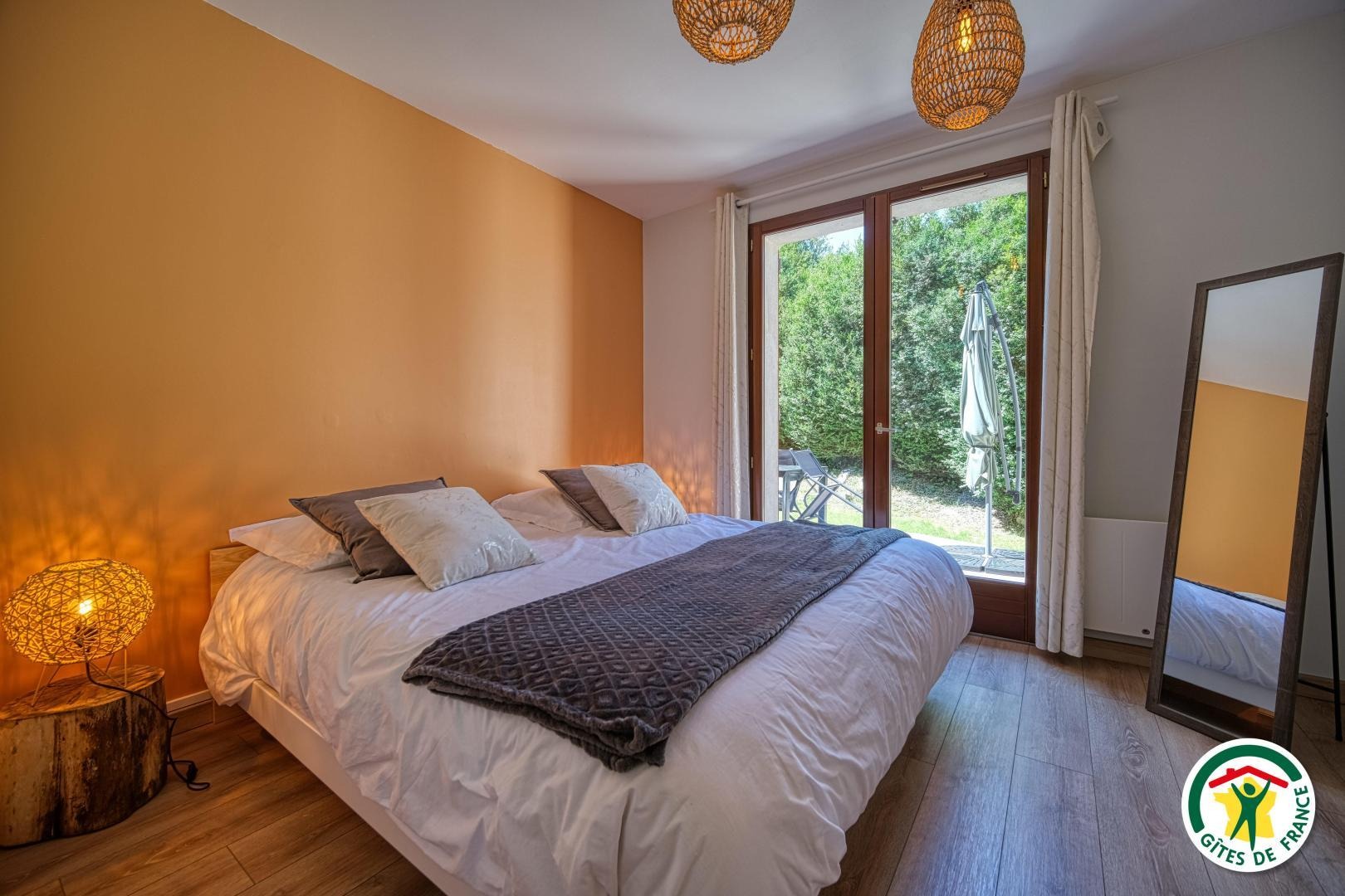 Vous accéderez au gîte par un sentier en terre, et l'entrée se fait par un escalier extérieur. En ouvrant la porte, vous découvrirez un grand salon avec un canapé convertible et TV, ouvert sur la salle à manger. La cuisine, entièrement équipée et située à proximité, dispose également d'un accès à la terrasse.