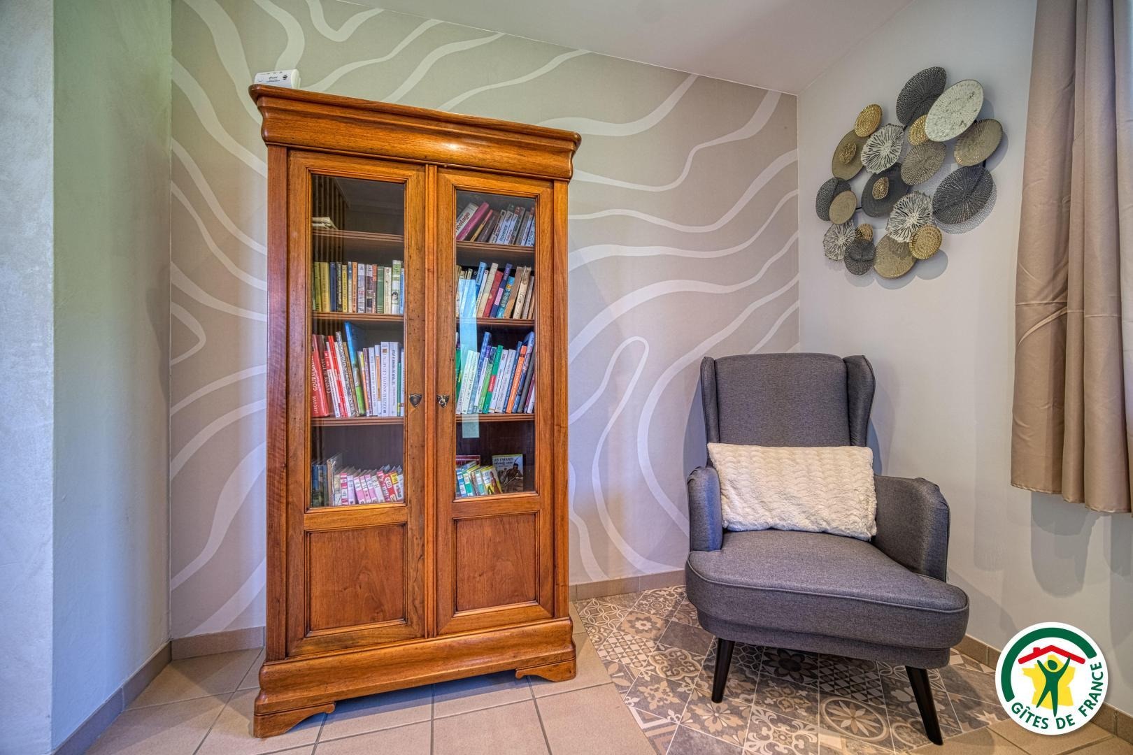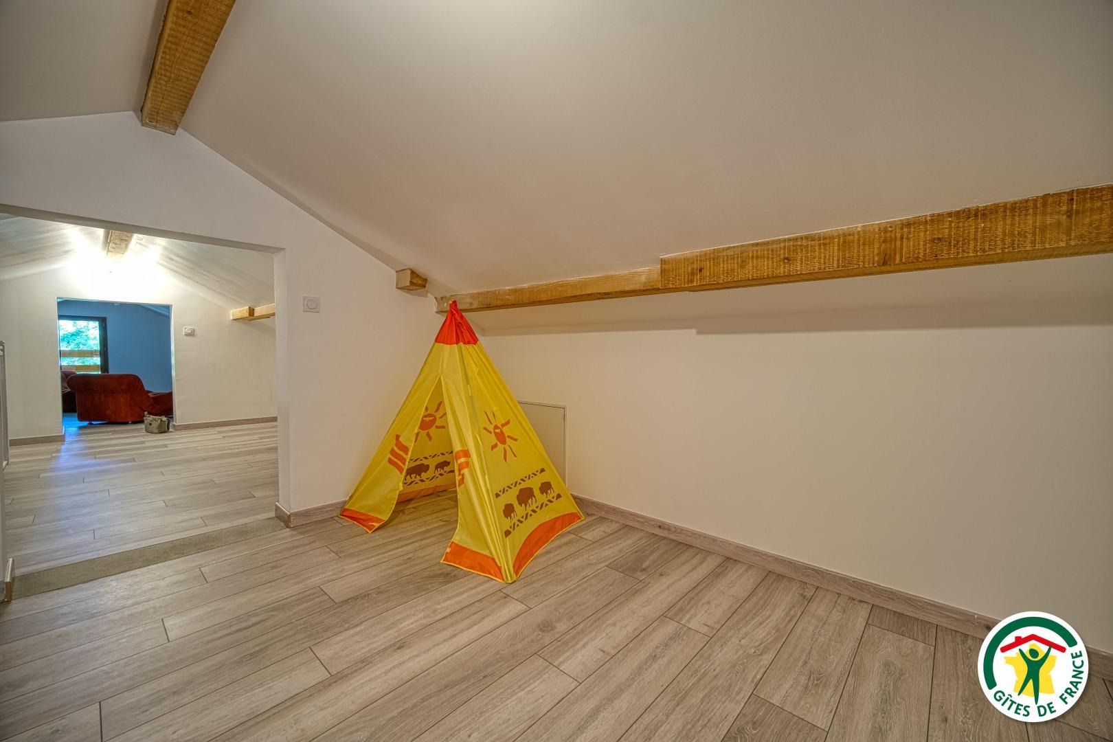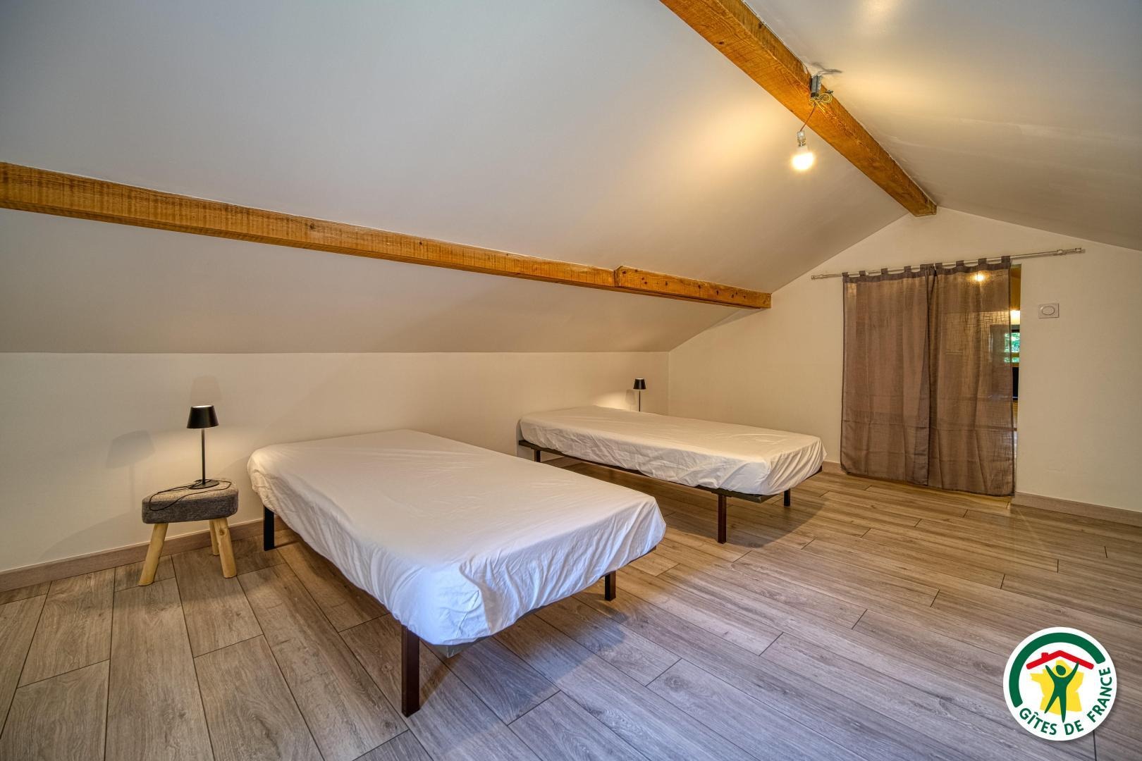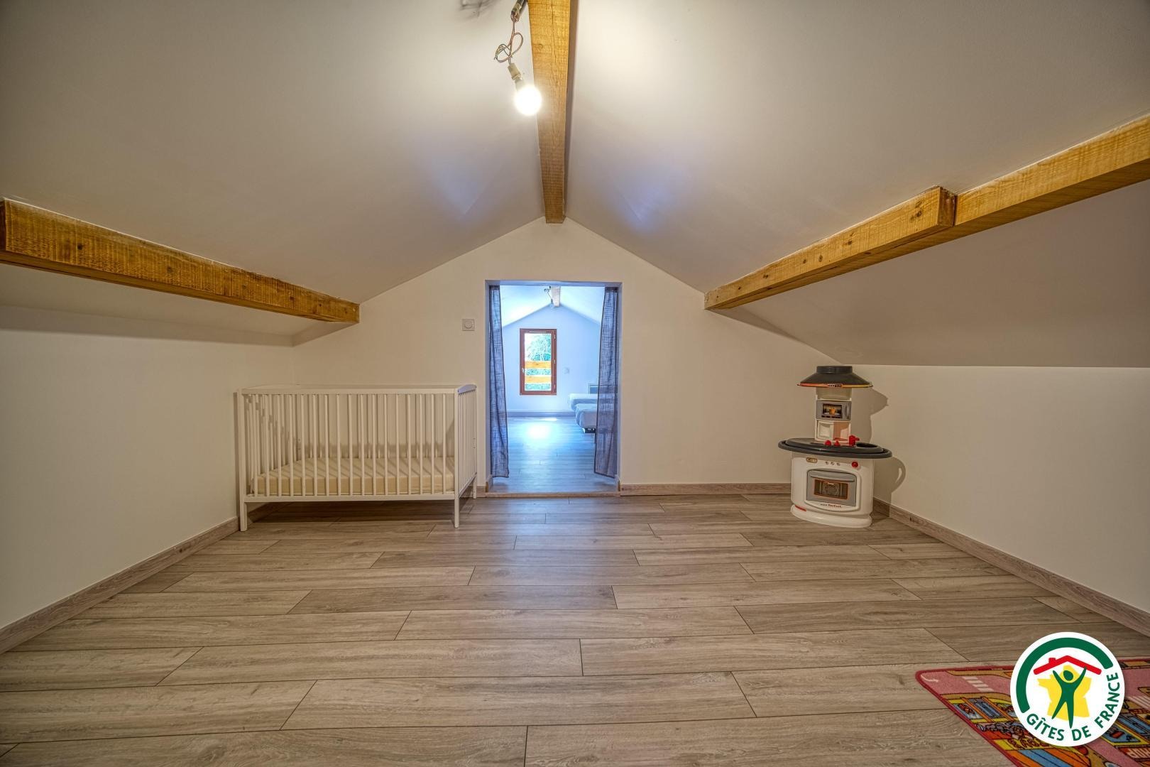 À l'étage, un second salon avec WC, un espace bibliothèque, et une dernière chambre équipée de deux lits de 90 cm complètent cet étage ( en cours de finition et d'aménagement).