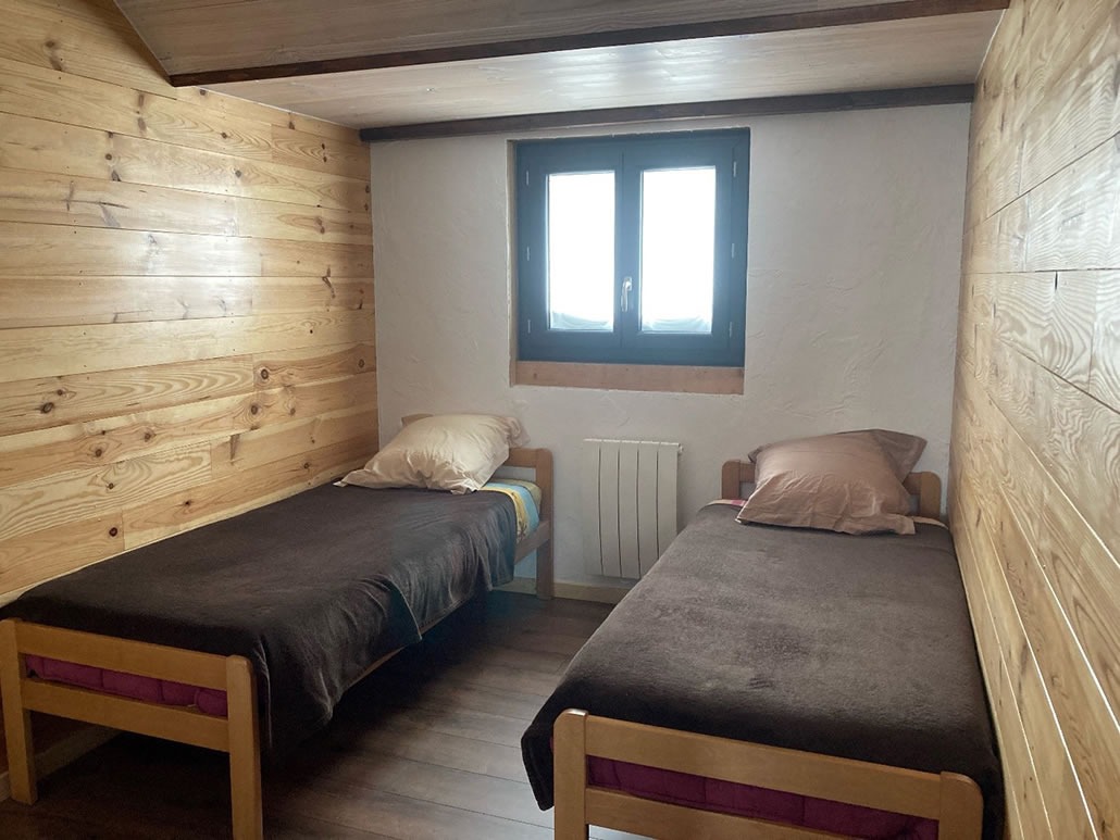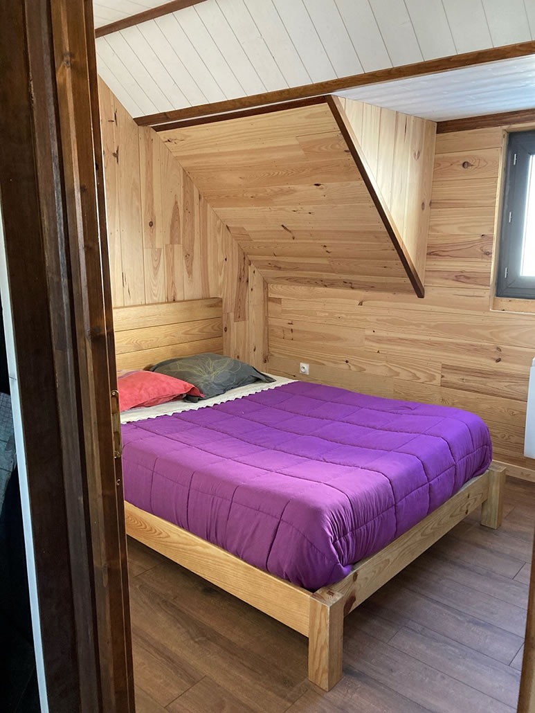Le coin nuit se compose de deux chambres : l’une avec deux lits simples, l’autre avec un lit double, offrant un confort douillet pour vos nuits.