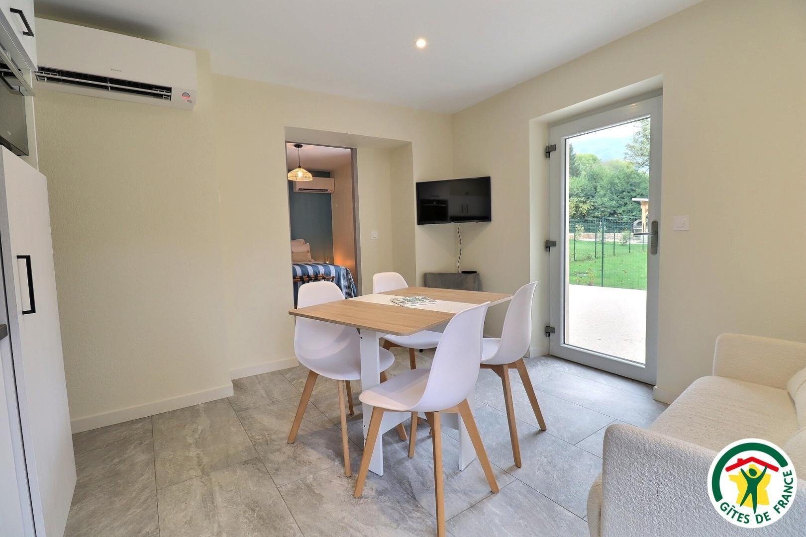 On aime ce gîte pour sa vue surplombant la rivière et sa terrasse à l'écart permettant toutefois de profiter de la convivialité du domaine.
