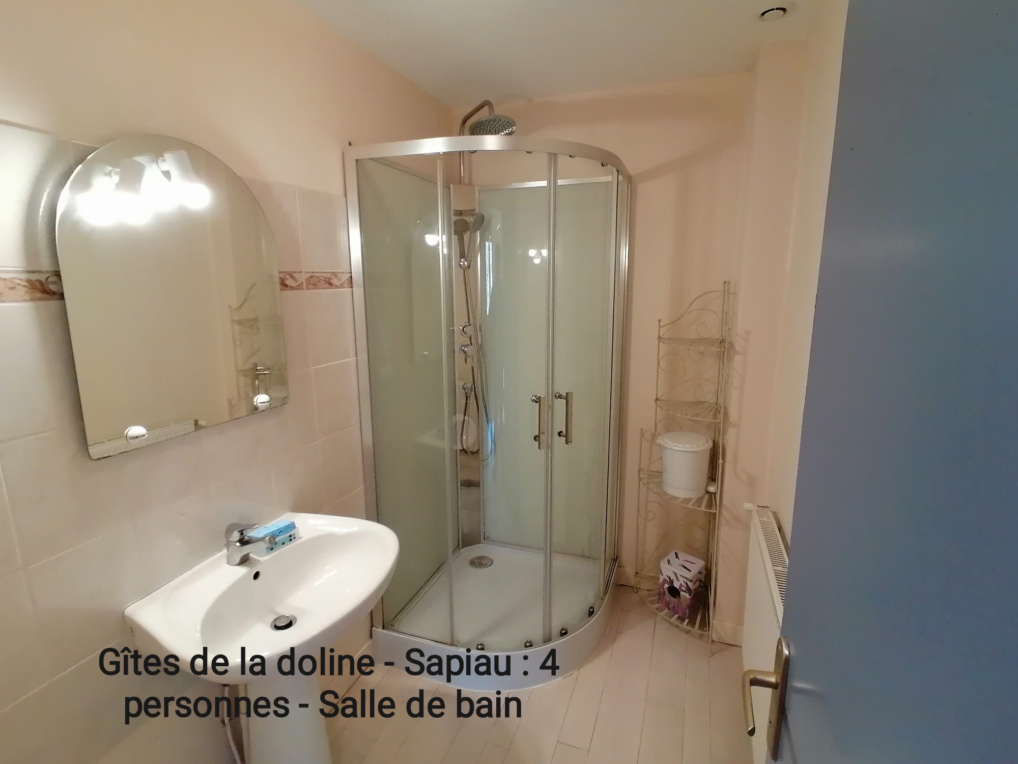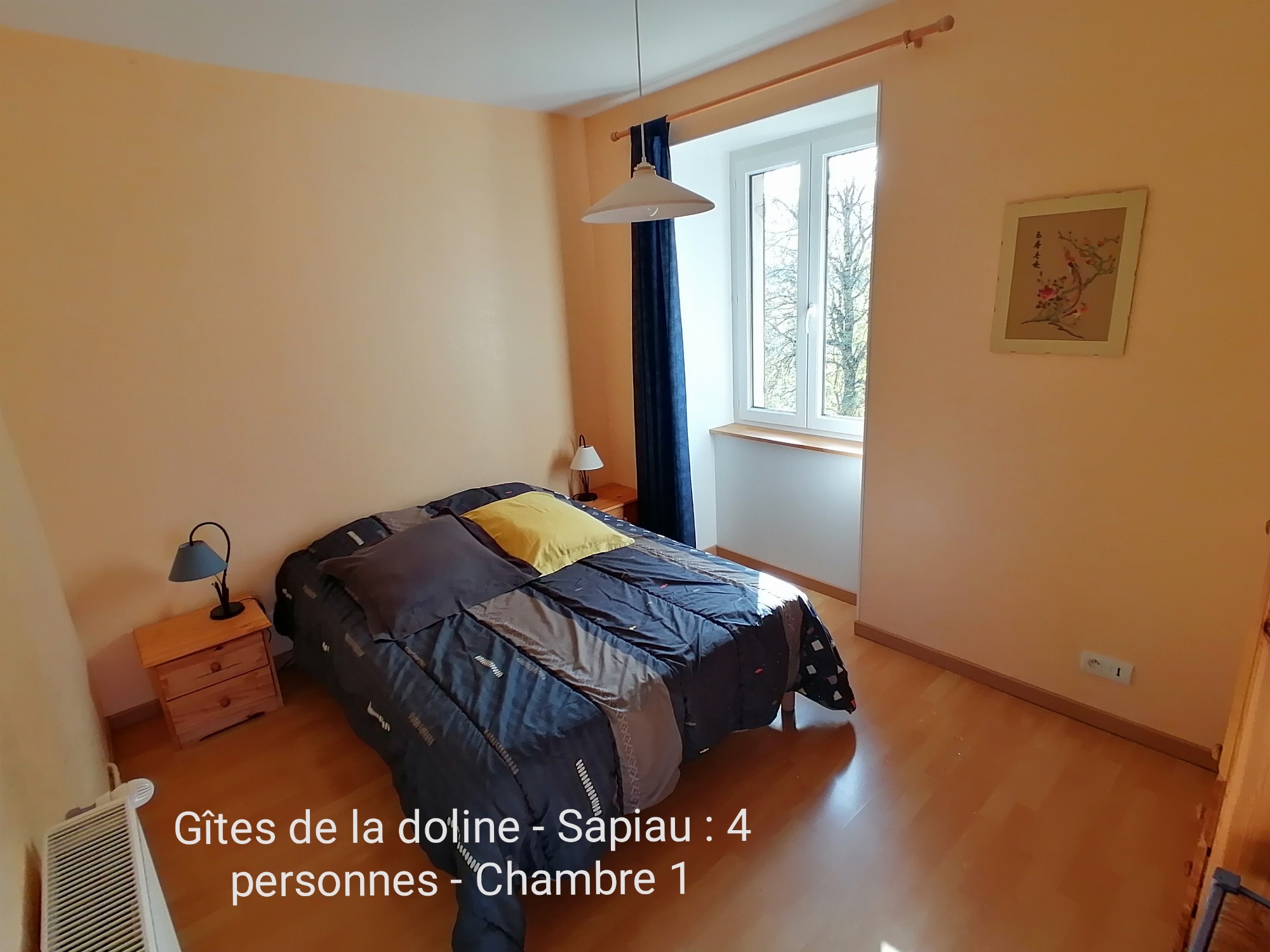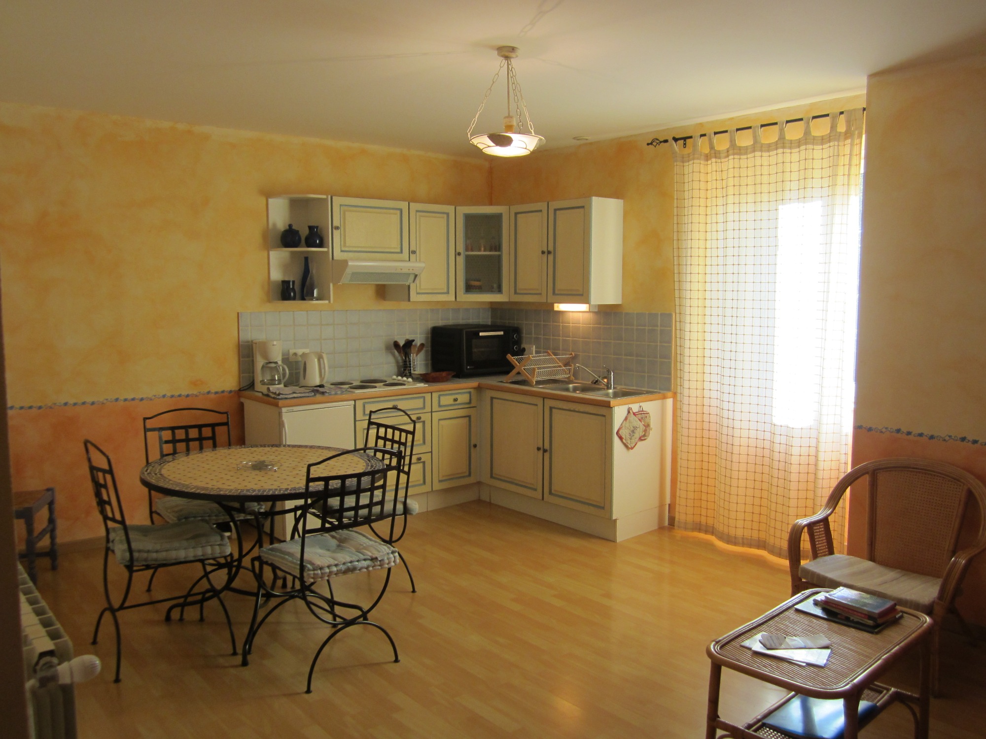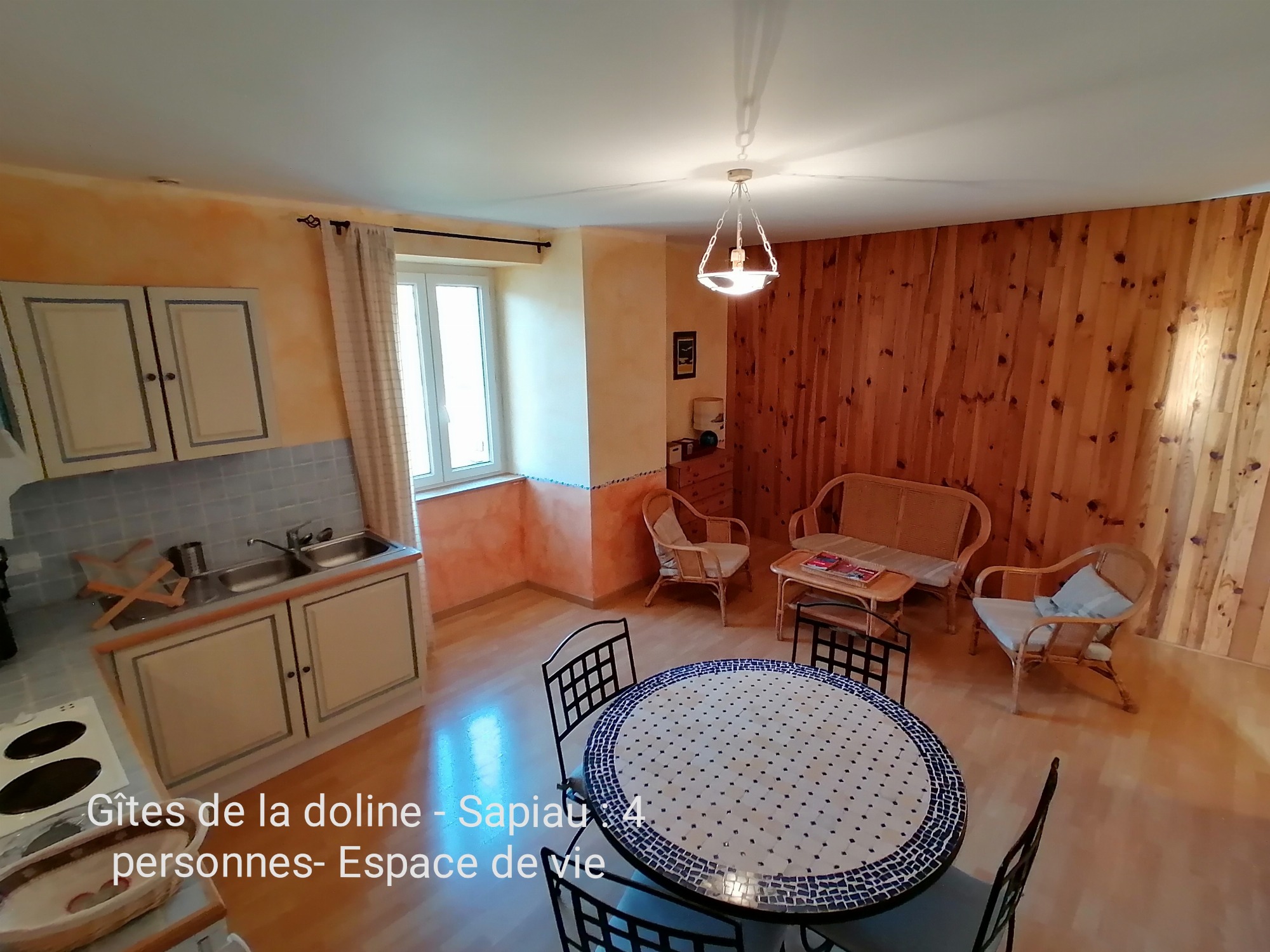 A l'intérieur du gite, 1pièce à vivre spacieuse (cuisine+espace détente) permet de vivre les temps de repas et de repos. Au même niveau, 1 chambre avec 1 lit double (140), 1 salle d'eau, wc. Au 2ème niveau, 1 chambre avec 2 lits simples (90 cm) et un cabinet de toilette.