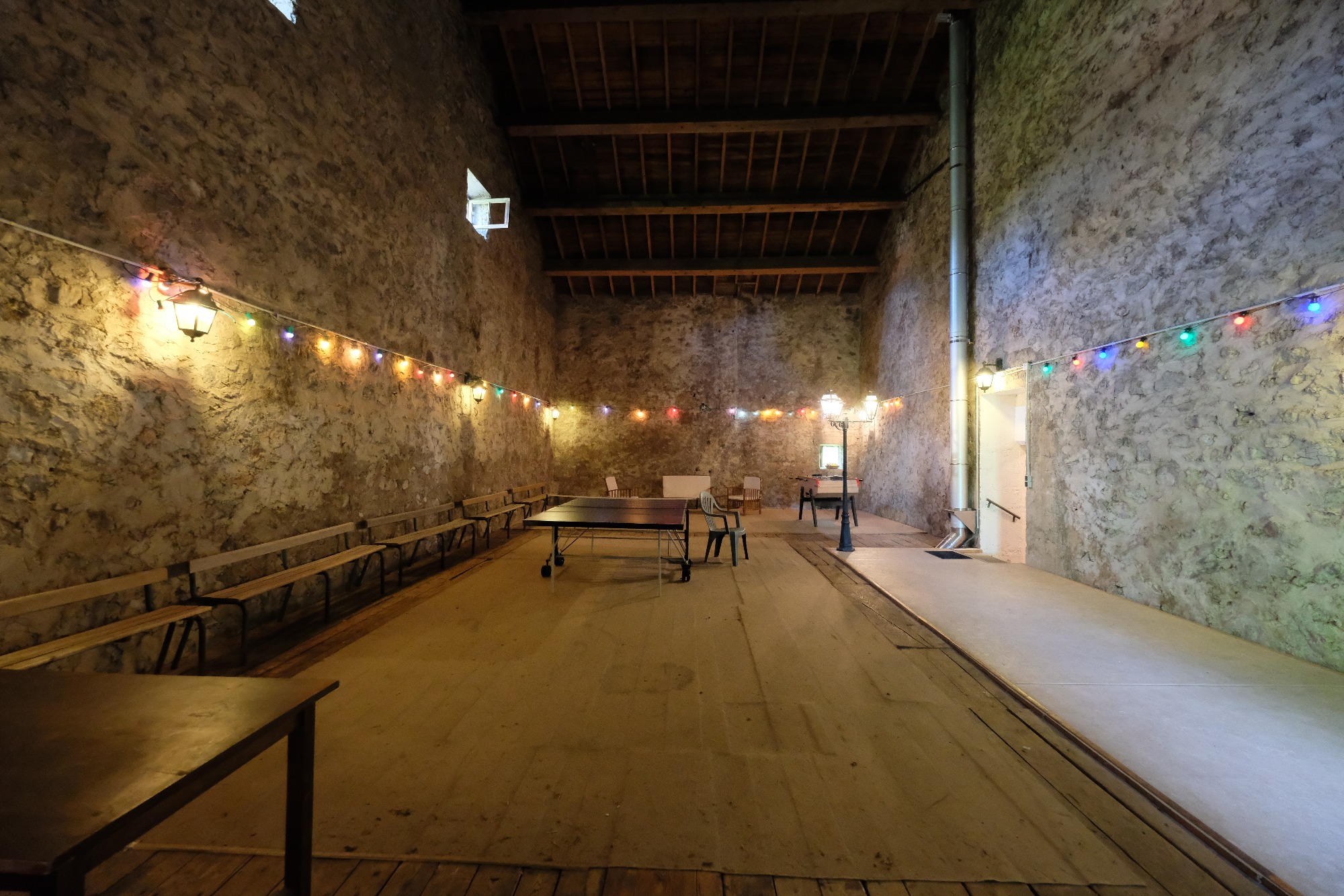 La salle de jeux (ping-pong+baby foot) aménagée dans la grange d'époque permet aussi d'autres activités, théâtre, chants, jeux.... C'est le lieu idéal par tous les temps.