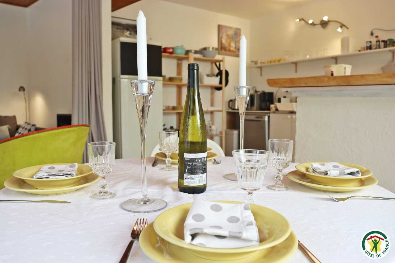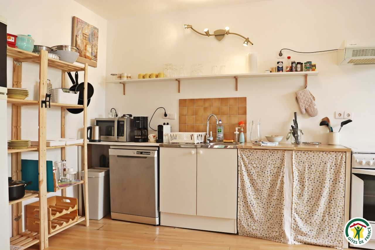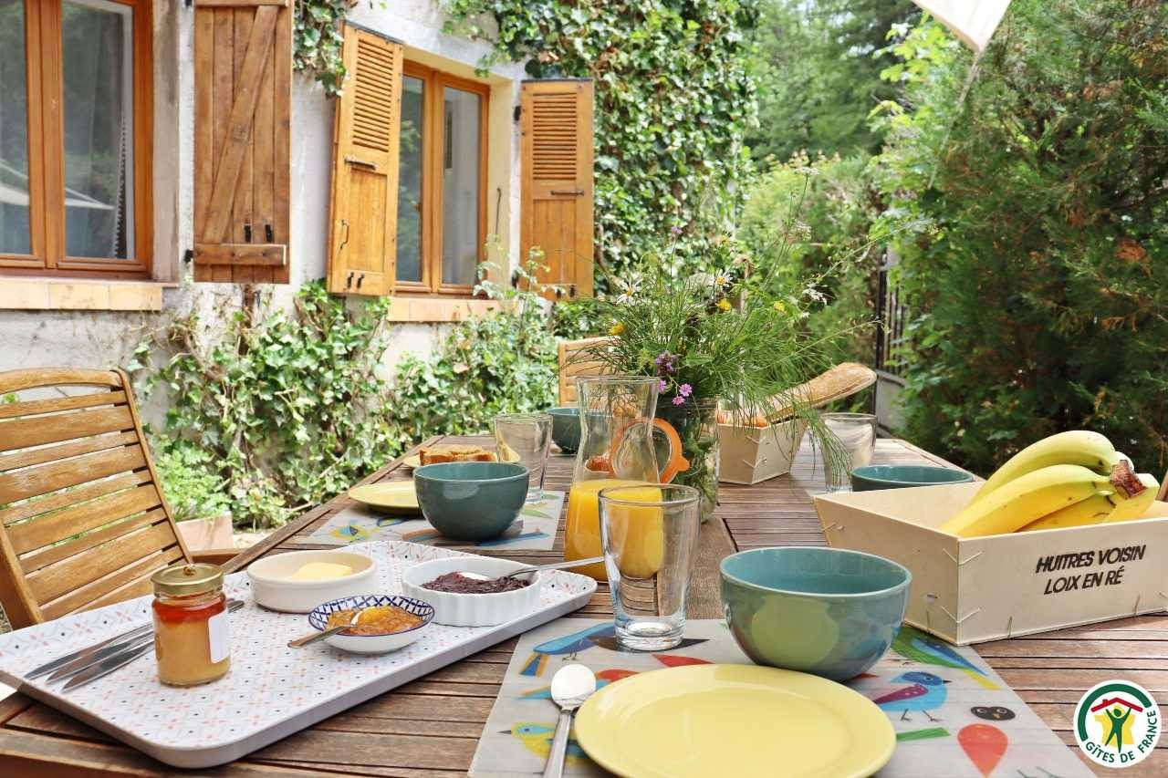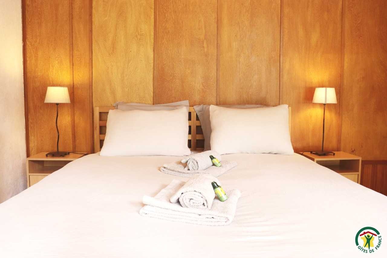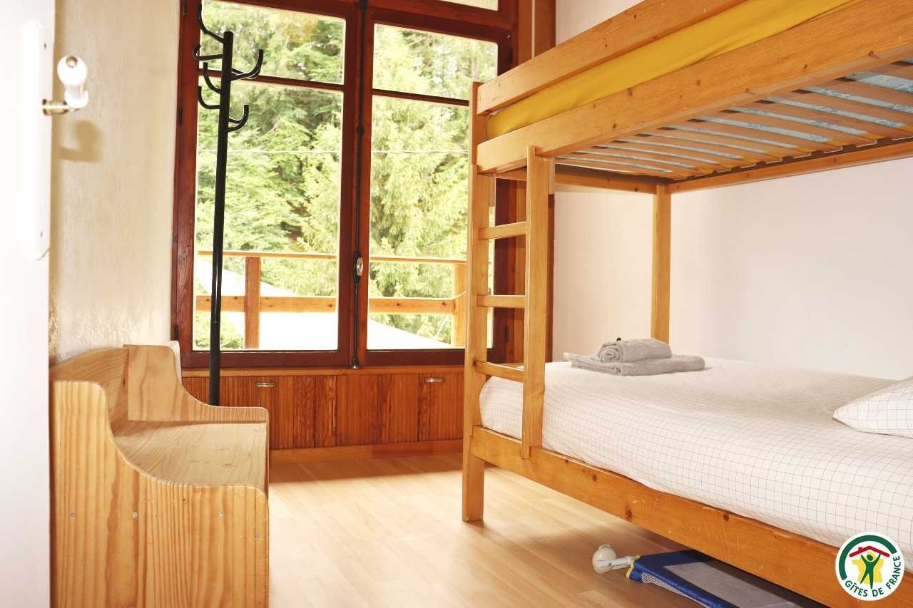 Gîte mitoyen à l'habitation des propriétaires avec entrée indépendante. Rez-de-chaussée : cuisine ouverte sur le séjour, espace repas et coin salon (canapé convertible 1x140), TV, fauteuil, salle d'eau/WC (douche rideau). A l'étage : salle d'eau/WC (douche rideau) et trois chambres. La première chambre dispose de deux lits simples ou d'un lit double (2x80 ou 1x160), la deuxième chambre d'un lit double (1x160) et accès à un balcon, la troisième chambre, plus petite, dispose de deux lits simples dont un lit superposé (2x90). Depuis la pièce à vivre du rez-de-chaussée, accès à la terrasse avec salon de jardin, barbecue charbon de bois, l'espace est clos avec deux portillons. En traversant la route (peu passante), terrain en herbe à partager avec les propriétaires : table de pique-nique, bains de soleil et accès rivière pour la baignade. 2 à 3 places de stationnement sur la propriété. A proximité de la D103.